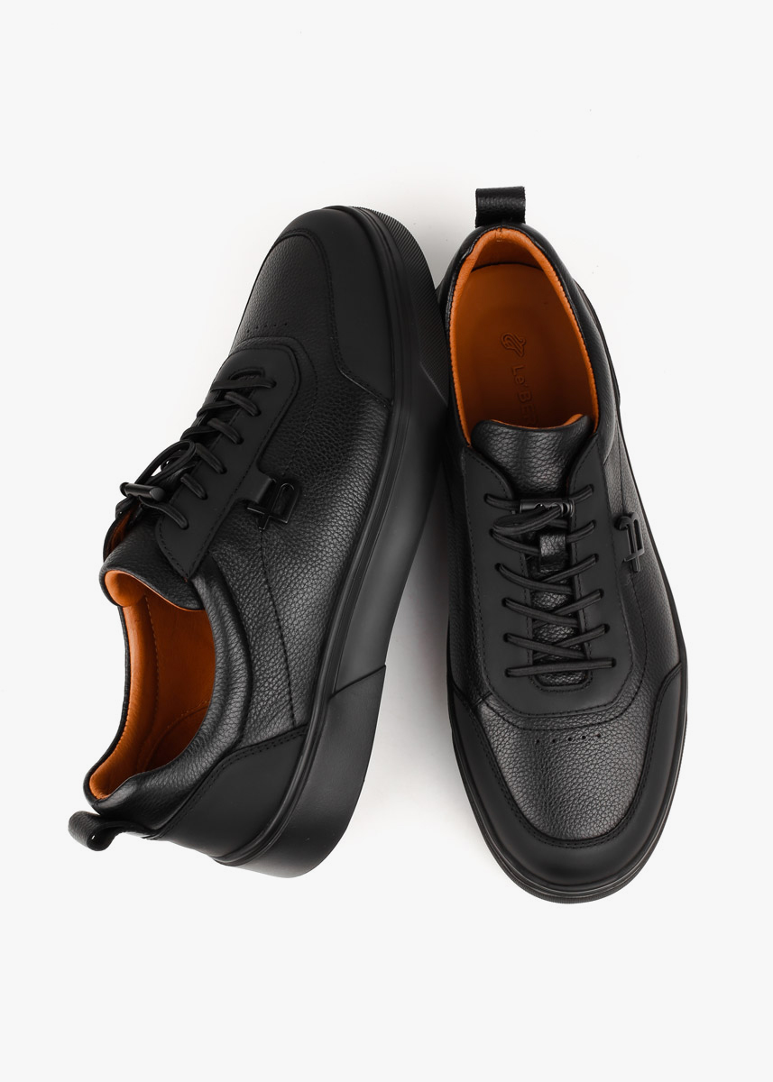 Чорні кеди виконані в комбінації глянцевої та матової шкіри. Ідеальний вибір для поєднання комфорту та універсальності у повсякденному гардеробі. Повнота моделі: середня.