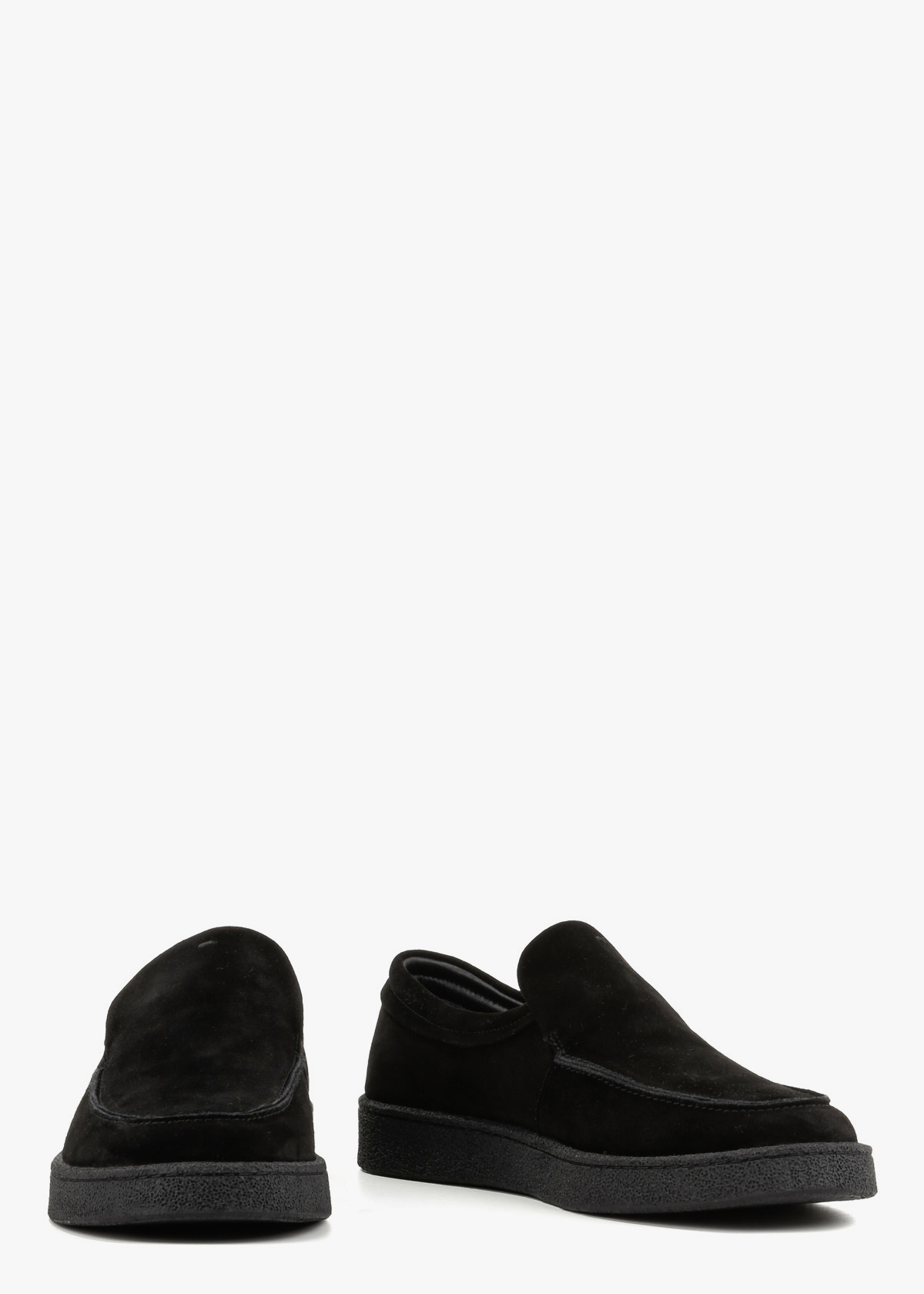 Лаконічність, що говорить голосніше за тренди. Чорні лофери з натуральної замші — уособлення спокійного стилю, який не потребує зайвих деталей. М’яка текстура, мінімалістичний силует і комфортна посадка роблять їх ідеальним вибором для повсякденного ритму міста. Вони легко поєднуються з будь-яким образом. У цій парі — свобода, комфорт і абсолютна впевненість у власному смаку.