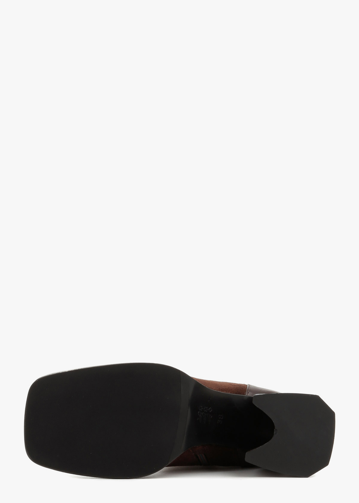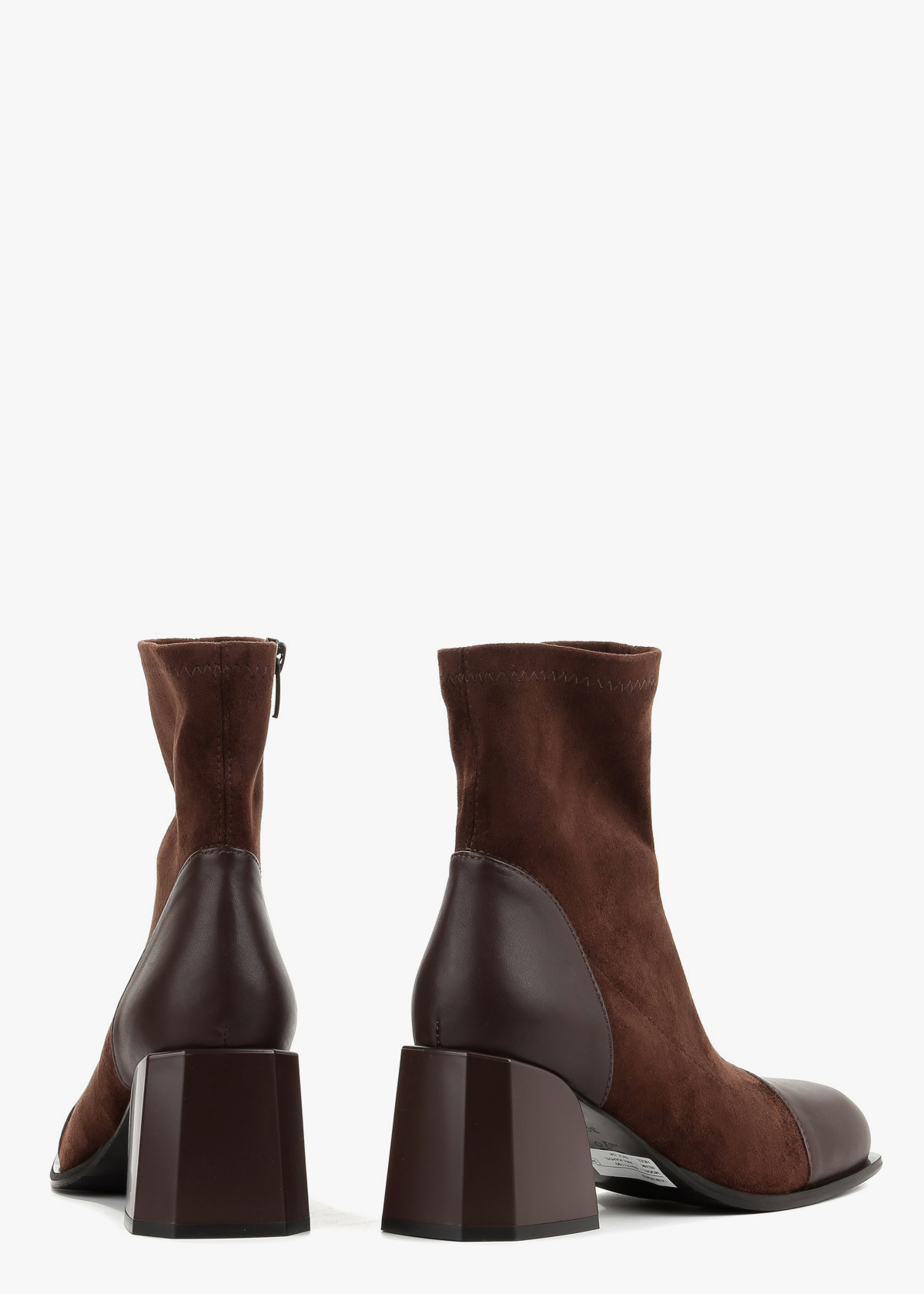 Ці стильні коричневі ботильйони з елегантним блоковим каблуком додадуть витонченості будь-якому образу. Виготовлені з м'якого стрейчевого матеріалу з шкіряними акцентами на носку та п’яті, вони поєднують комфорт та розкіш. Модний дизайн з високим верхом чудово підійде як для офісного стилю, так і для вечірніх виходів. Ідеальна модель для тих, хто шукає універсальність і стиль в одному взутті.