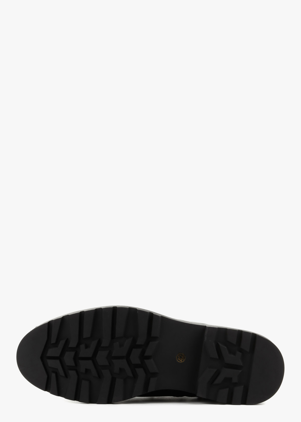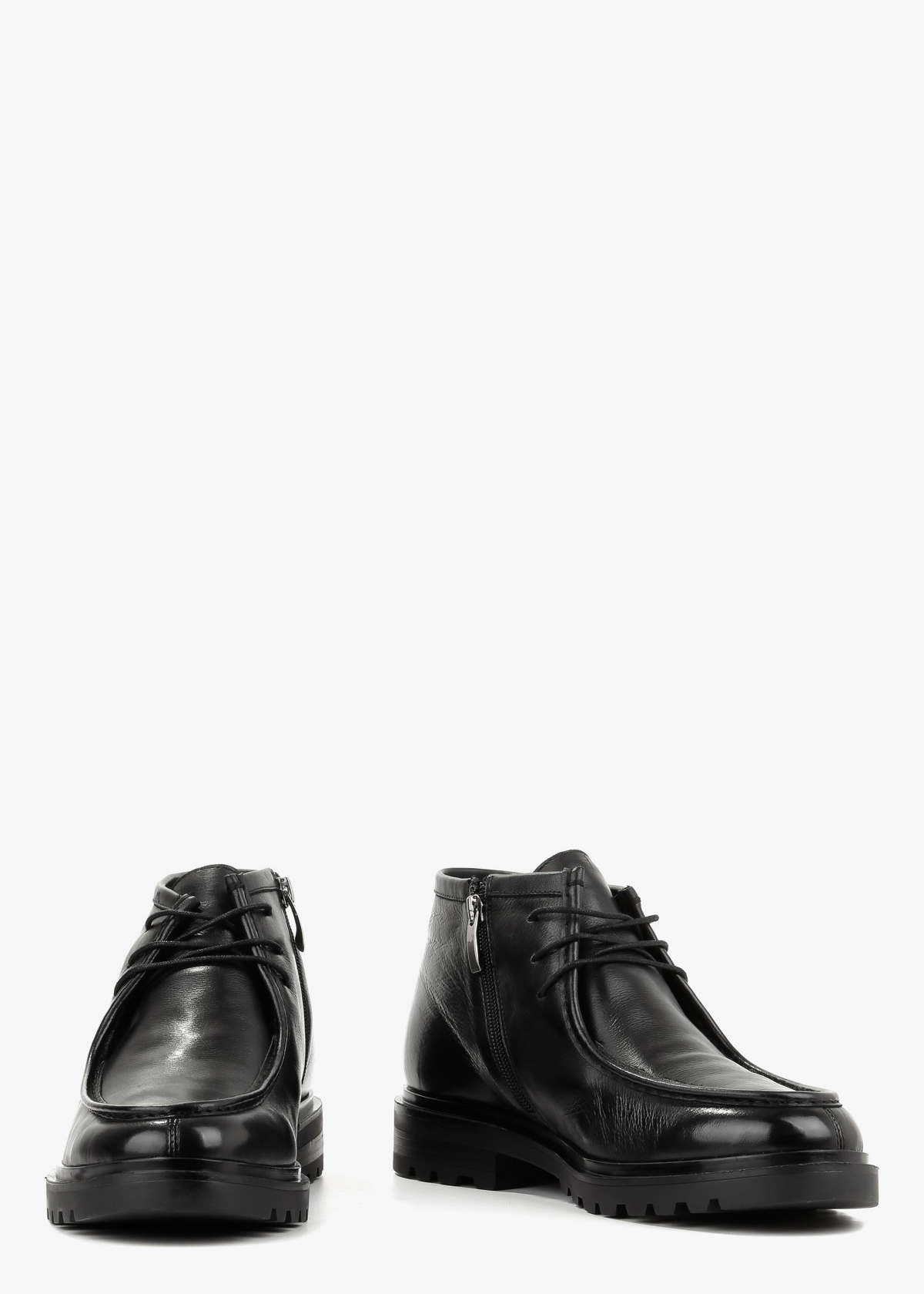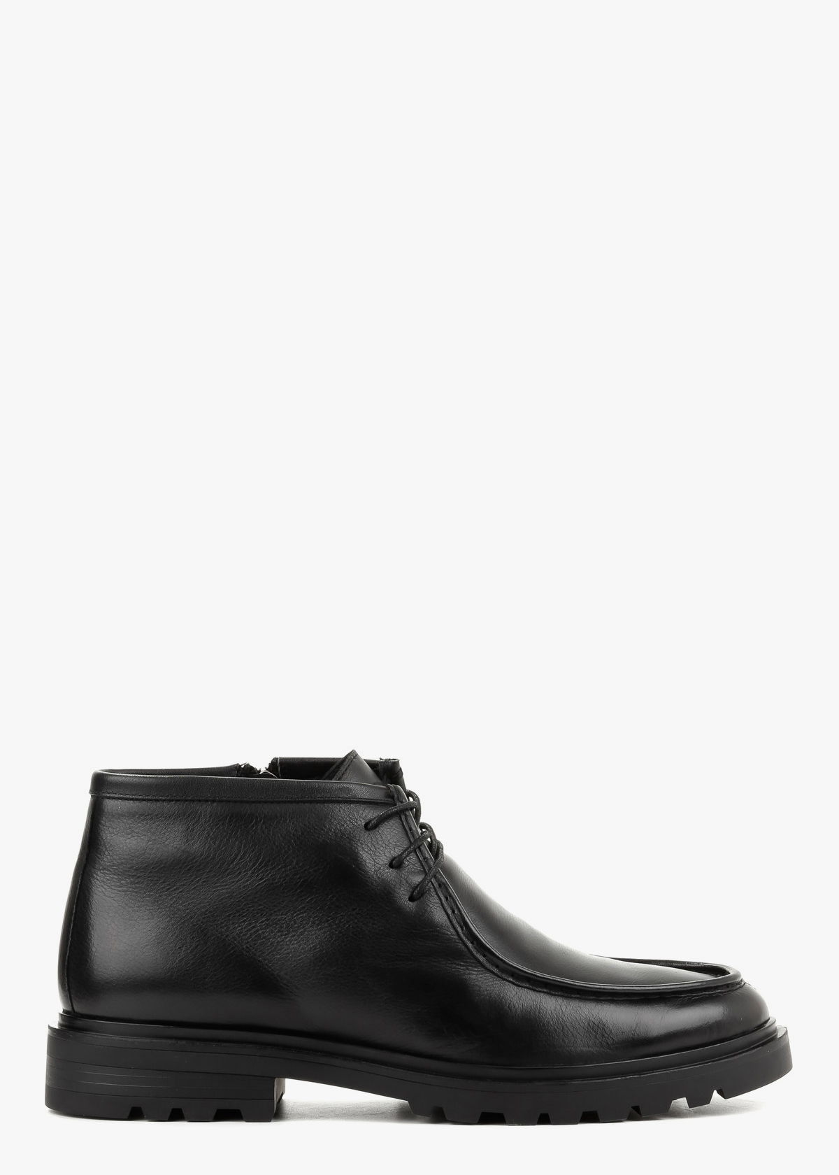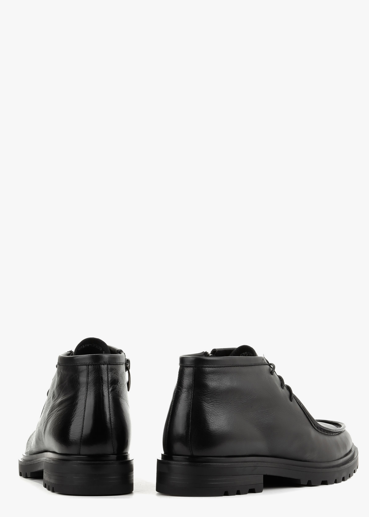 Гладка чорна шкіра, акуратні шви та монолітна підошва створюють гармонію міської сили та елегантності. Ідеальні для ритму великого міста, вони додають упевненості з кожним кроком. Суворий, але вишуканий дизайн легко поєднується як з діловим костюмом, так і з кежуал луком. У таких деталях — справжній голос нового чоловічого мінімалізму.
