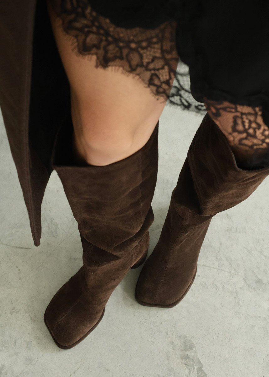 | Заміри для 38 розміру: Висота чобітка: 44 см Обхват халяви: посередині 38 см, зверху 41 см |