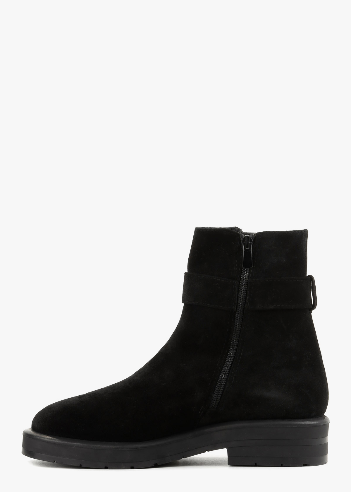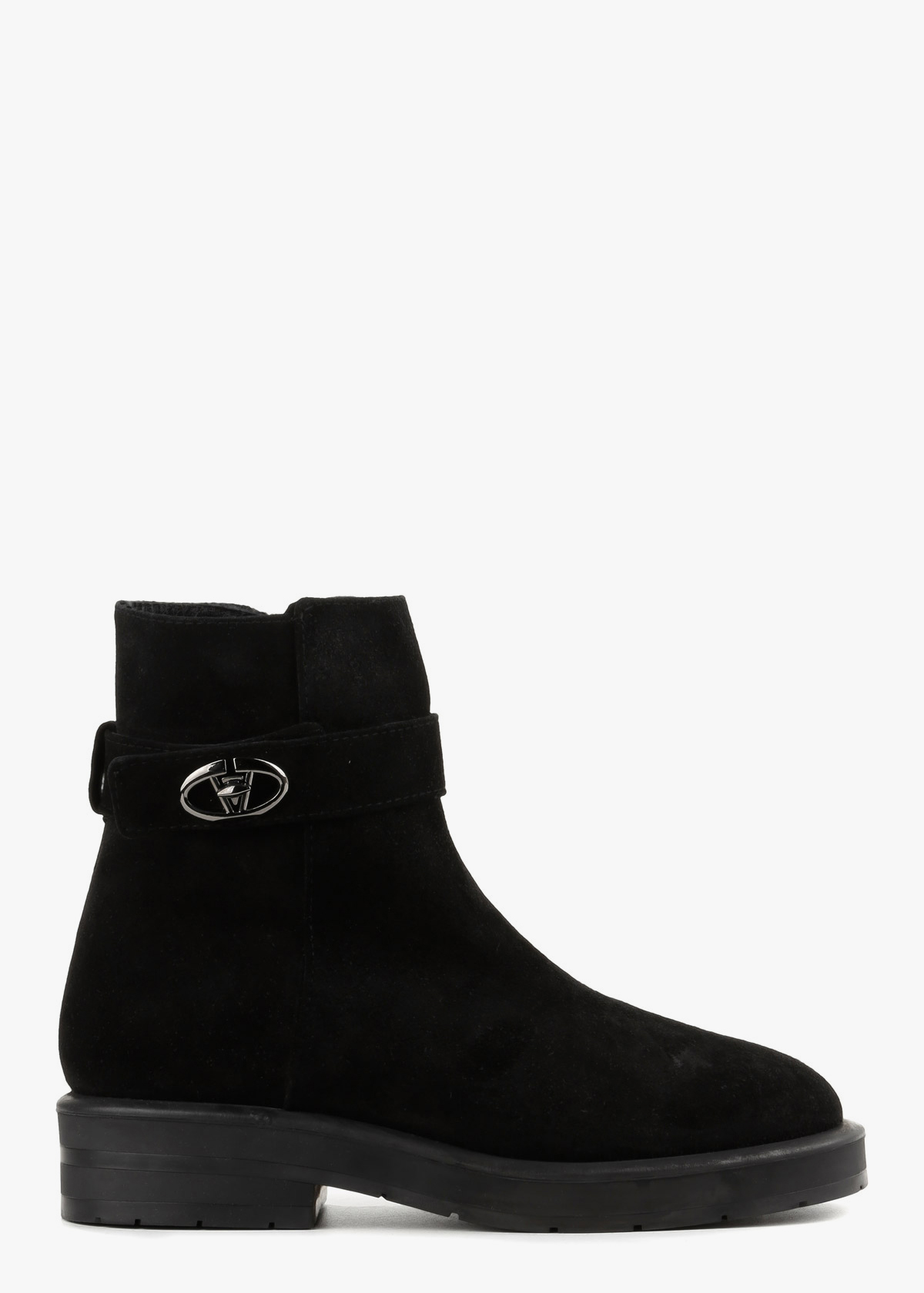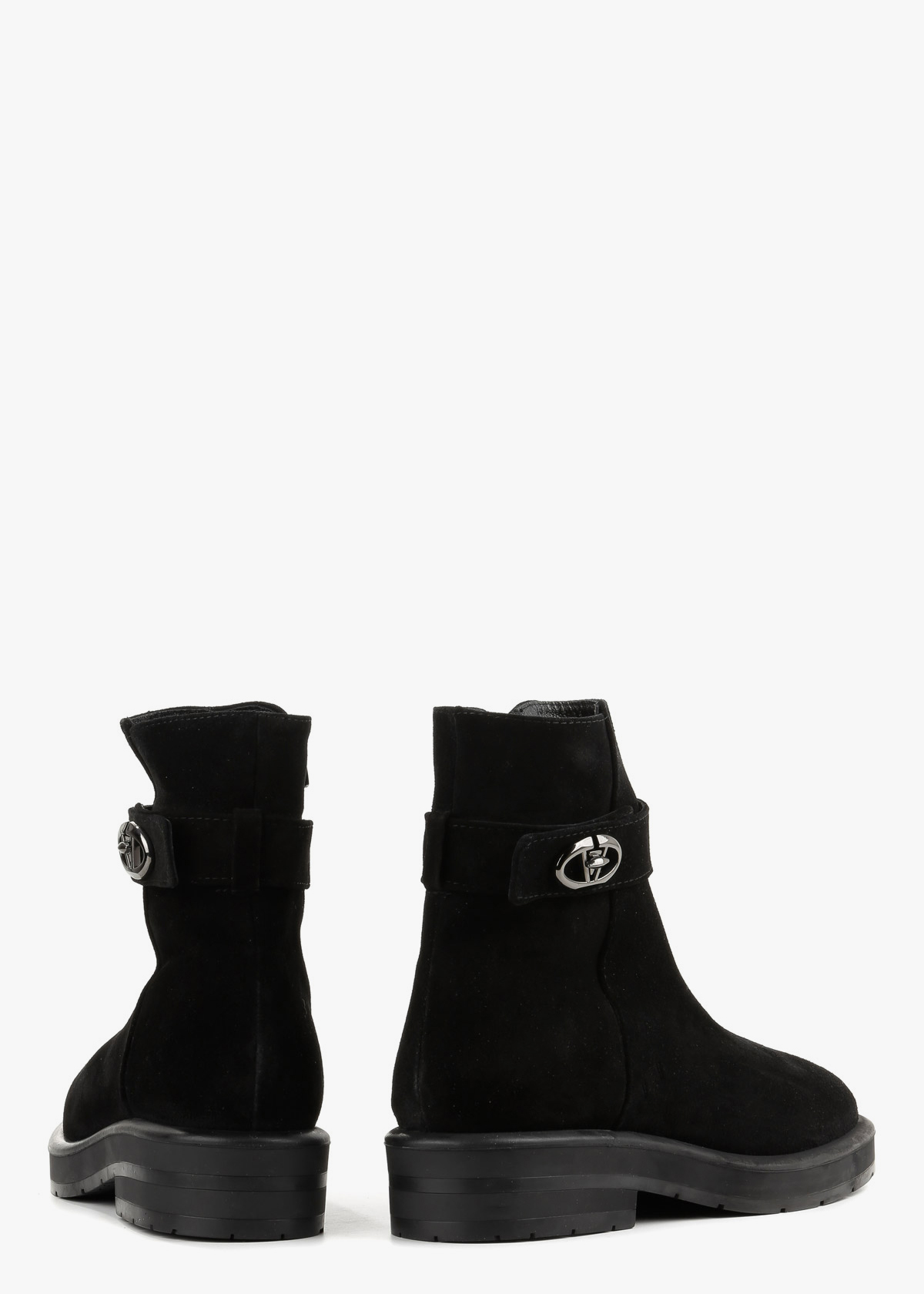Стильні чорні черевики з м’якої замші — вдале поєднання елегантності та практичності. Лаконічний дизайн із металевою пряжкою додає витонченого акценту, зберігаючи стриманий характер пари. Завдяки зручній підошві та продуманій формі вони пасують як до повсякденного, так і до більш вишуканого образу. Взуття, яке підкреслює впевненість і бездоганний смак у будь-яку пору.
