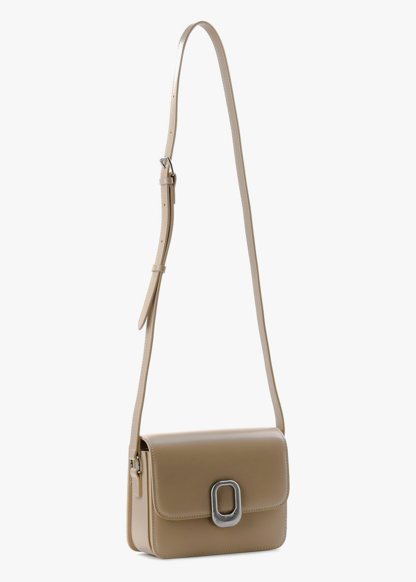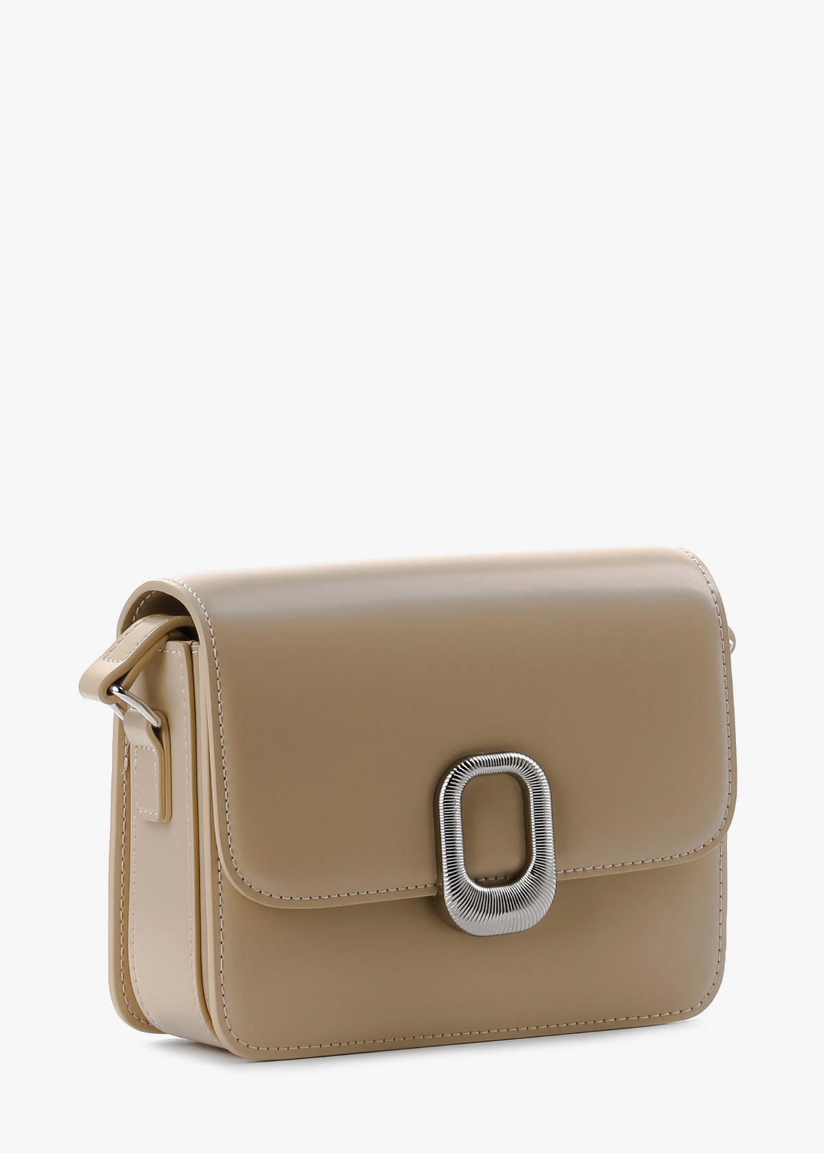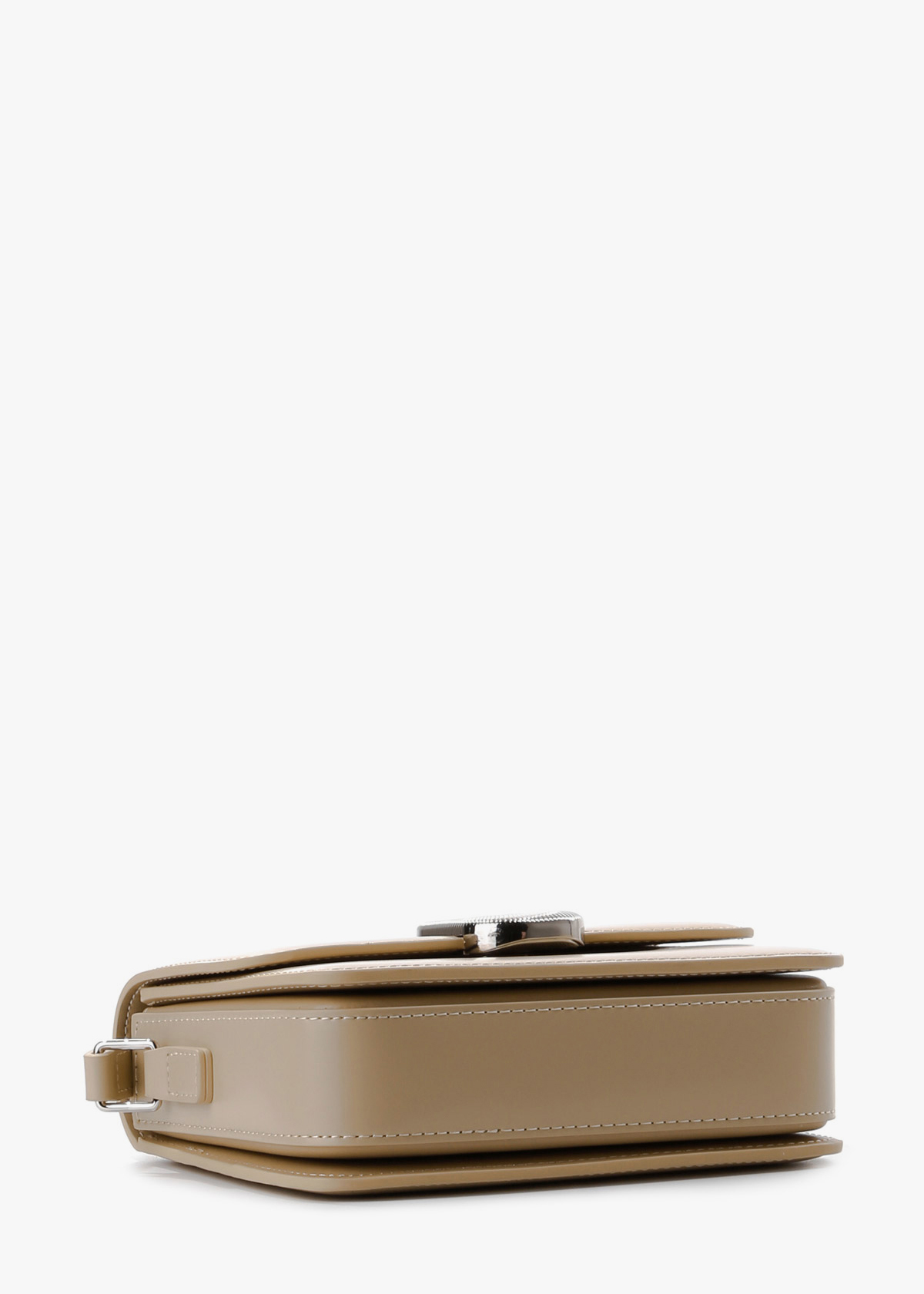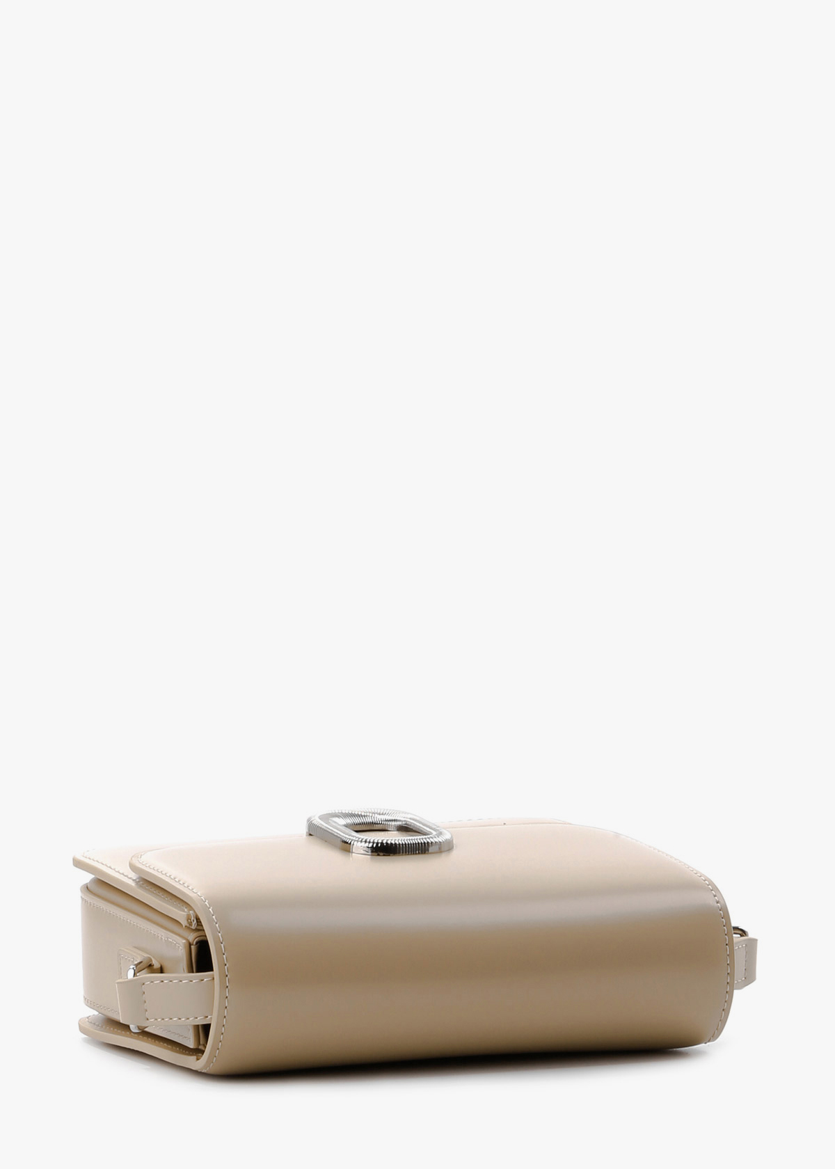 Бежева каркасна сумка з глянцевої шкіри з виразною срібною фурнітурою привертає увагу чітким силуетом і акцентною застібкою. Усередині — одне основне відділення та дві кишені для зручної організації речей, підкладка виконана зі шкіри. Структурована форма зберігає акуратний вигляд і додає образу зібраності та характеру.