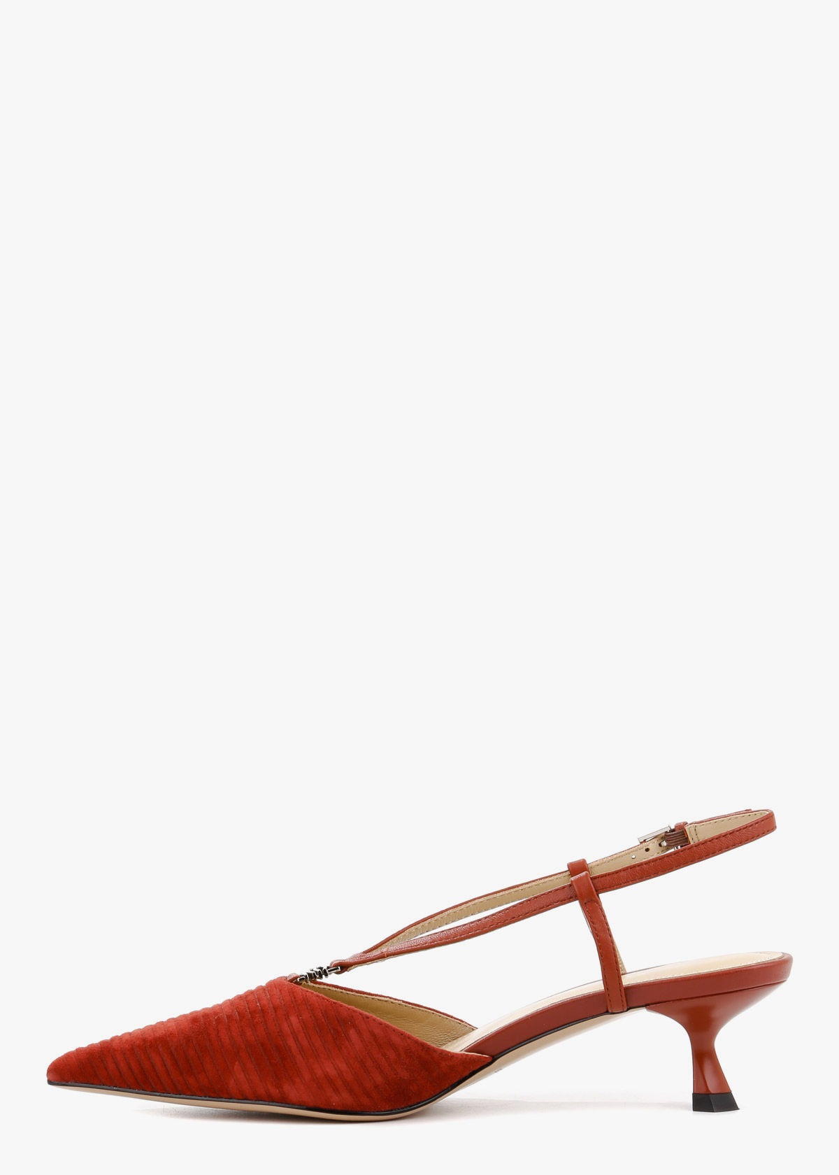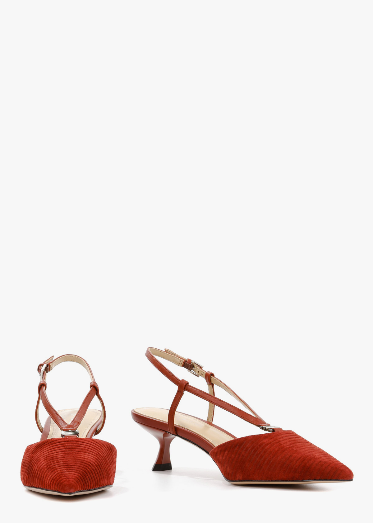 Жіночі сабо бордового кольору з натуральної замші — витончена модель із загостреним носком та відкритою п’ятою. Фактурний замшевий верх має рівномірну текстуру, а тонкий ремінець із застібкою фіксує ногу та дозволяє відрегулювати посадку. Невисокий стійкий каблук забезпечує комфорт і зручність під час ходьби. На нозі виглядають акуратно, добре тримають форму та підходять для щоденного носіння або особливих подій.