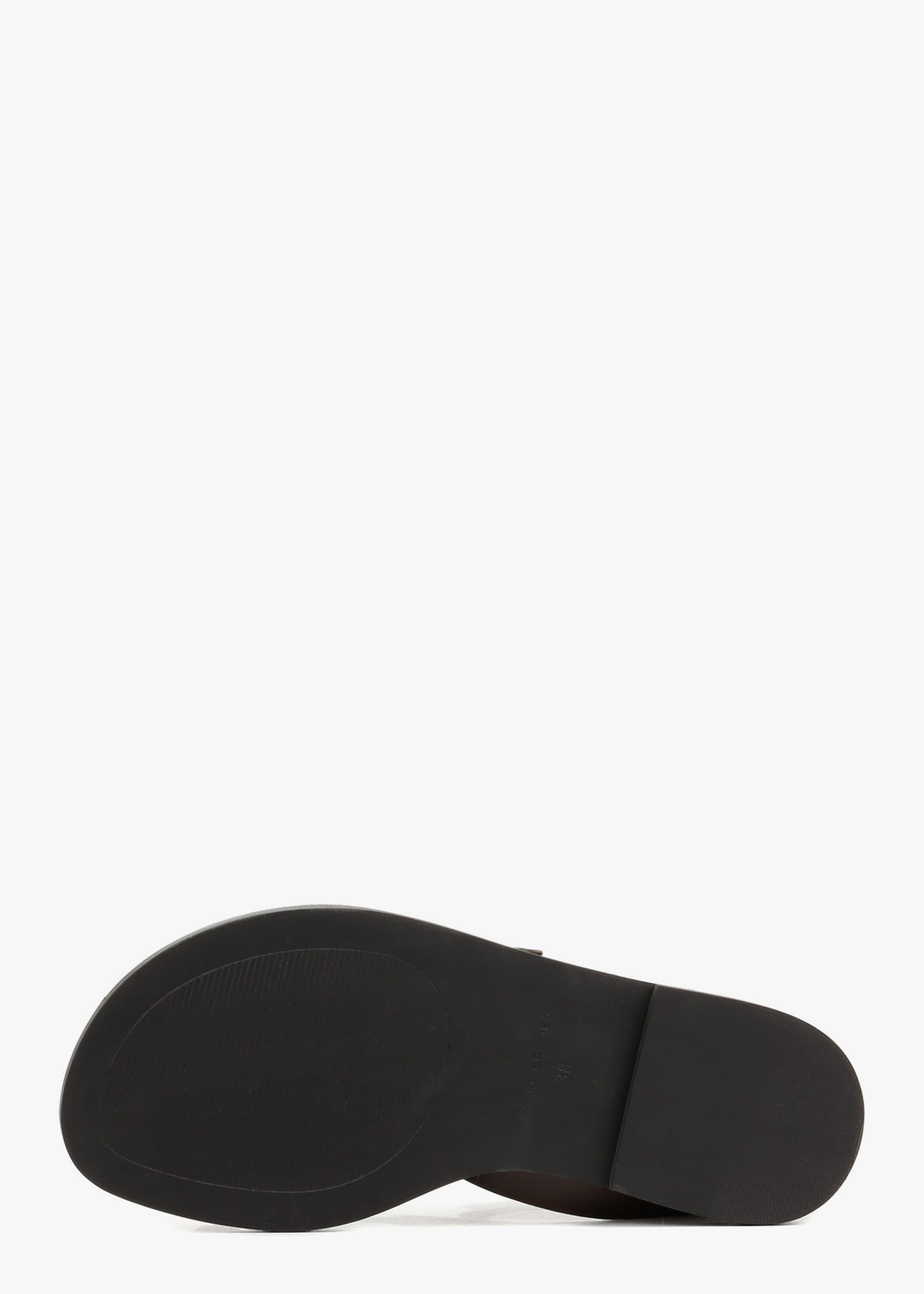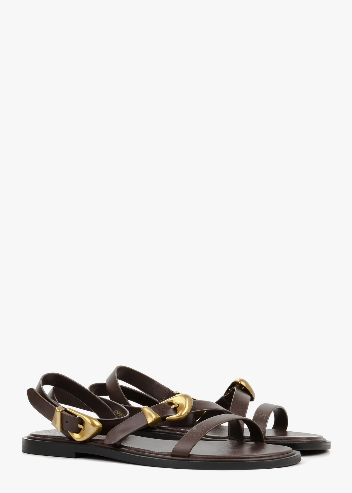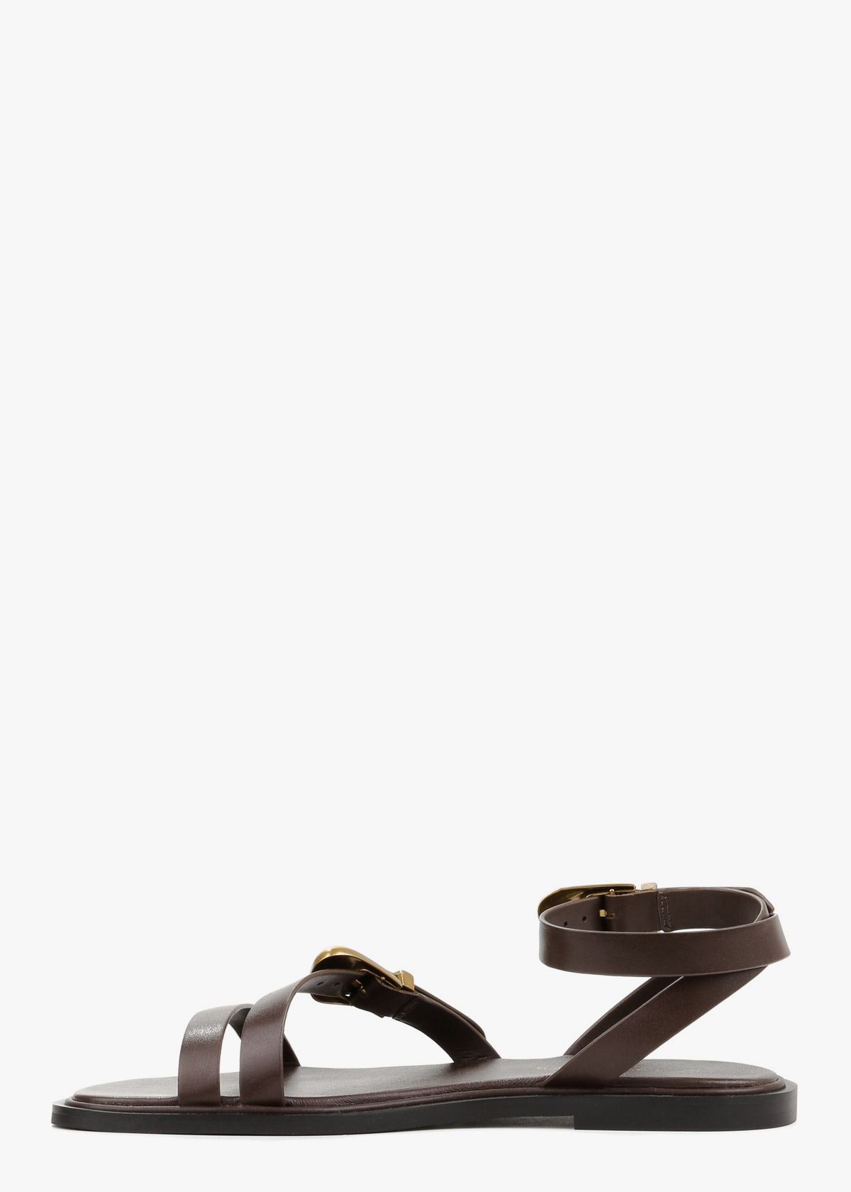 Жіночі сандалі коричневого кольору виконані з натуральної шкіри та мають мінімалістичний, чіткий дизайн. Тонкі ремінці з металевими пряжками добре фіксують стопу й дозволяють відрегулювати посадку під себе. Плоска підошва забезпечує природний крок, а в носінні модель відчувається легко й стабільно, без зайвого навантаження на ногу.