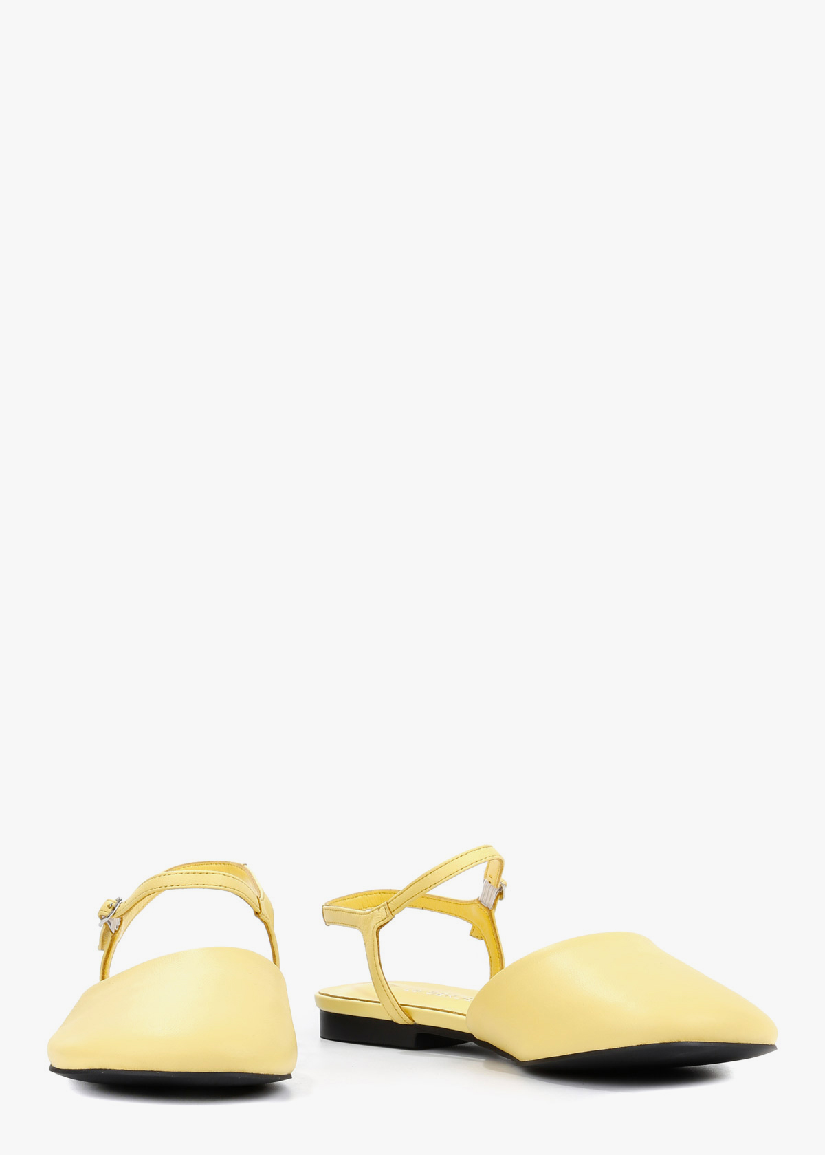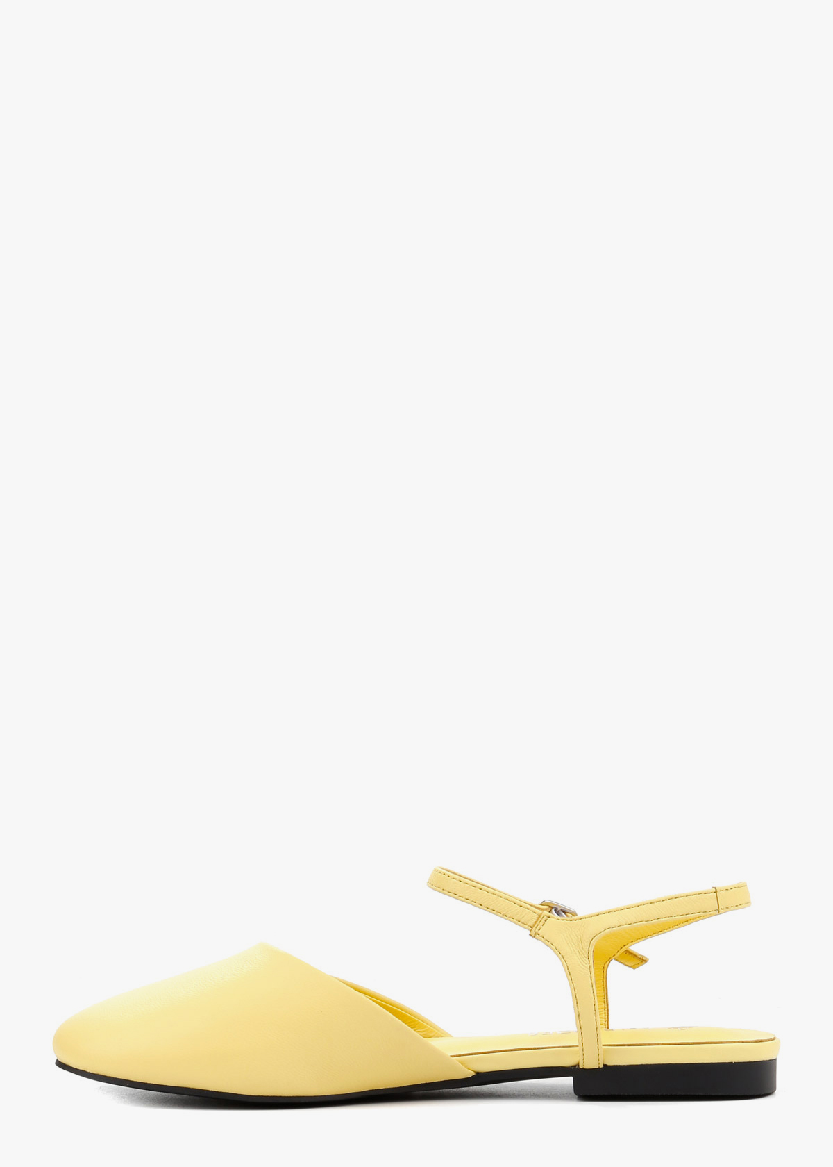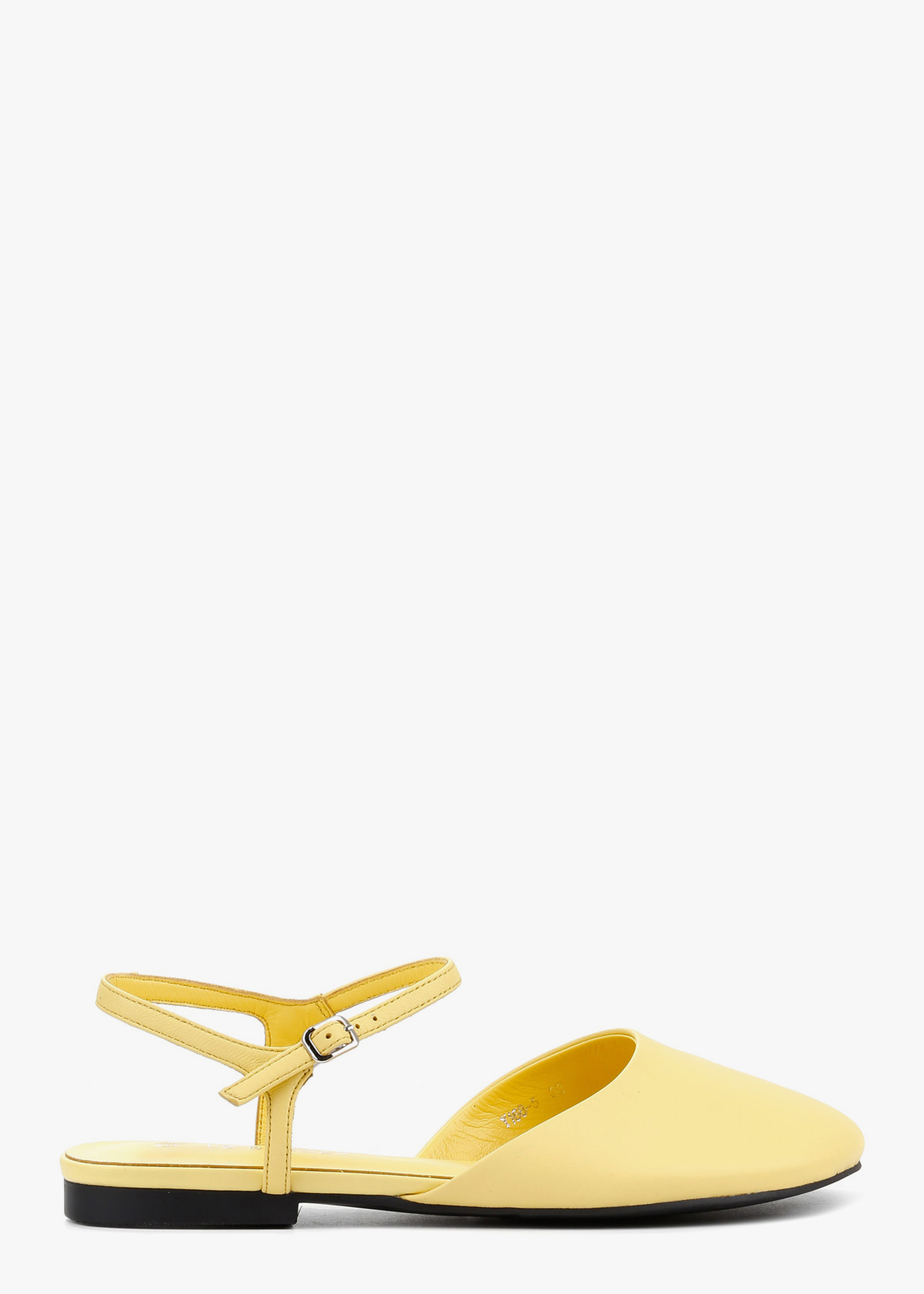 Жіночі сандалі ніжно-жовтого кольору виготовлені з м’якої натуральної шкіри, що забезпечує бездоганний комфорт протягом усього дня. Модель із закритим мисом та витонченими тонкими ремінцями надійно фіксує стопу, створюючи легкий і невагомий силует. Плоска підошва та лаконічний дизайн роблять цю пару ідеальним вибором для стильних літніх прогулянок.
