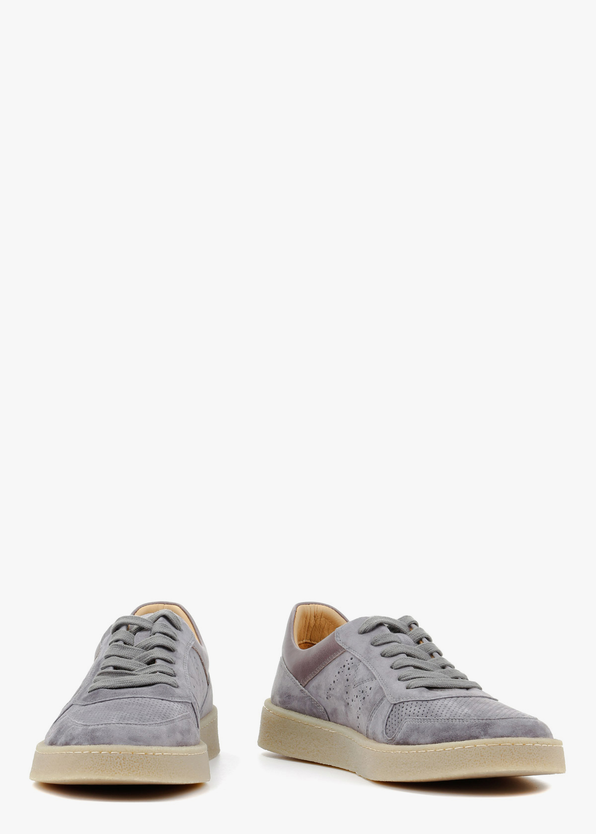 Чоловічі кеди в сірому кольорі виготовлені з натуральної замші з акцентною перфорацією, що забезпечує ногам комфорт і свіжість. Модель доповнена лаконічною шнурівкою в тон та м'якою шкіряною вставкою на заднику для кращої зносостійкості та зручної посадки. Світла гумова підошва створює приємний візуальний контраст і гарантує чудову стійкість під час щоденних прогулянок містом.