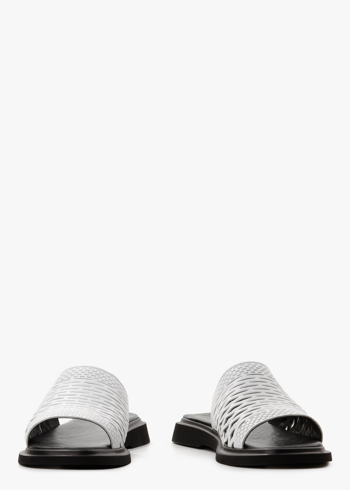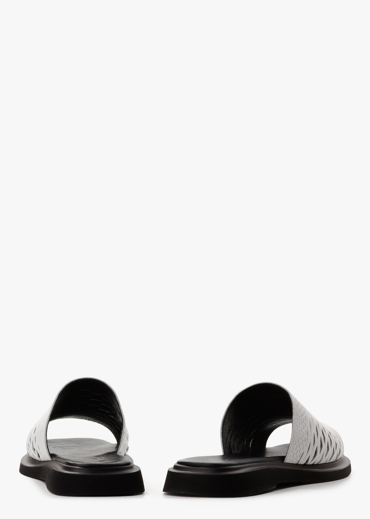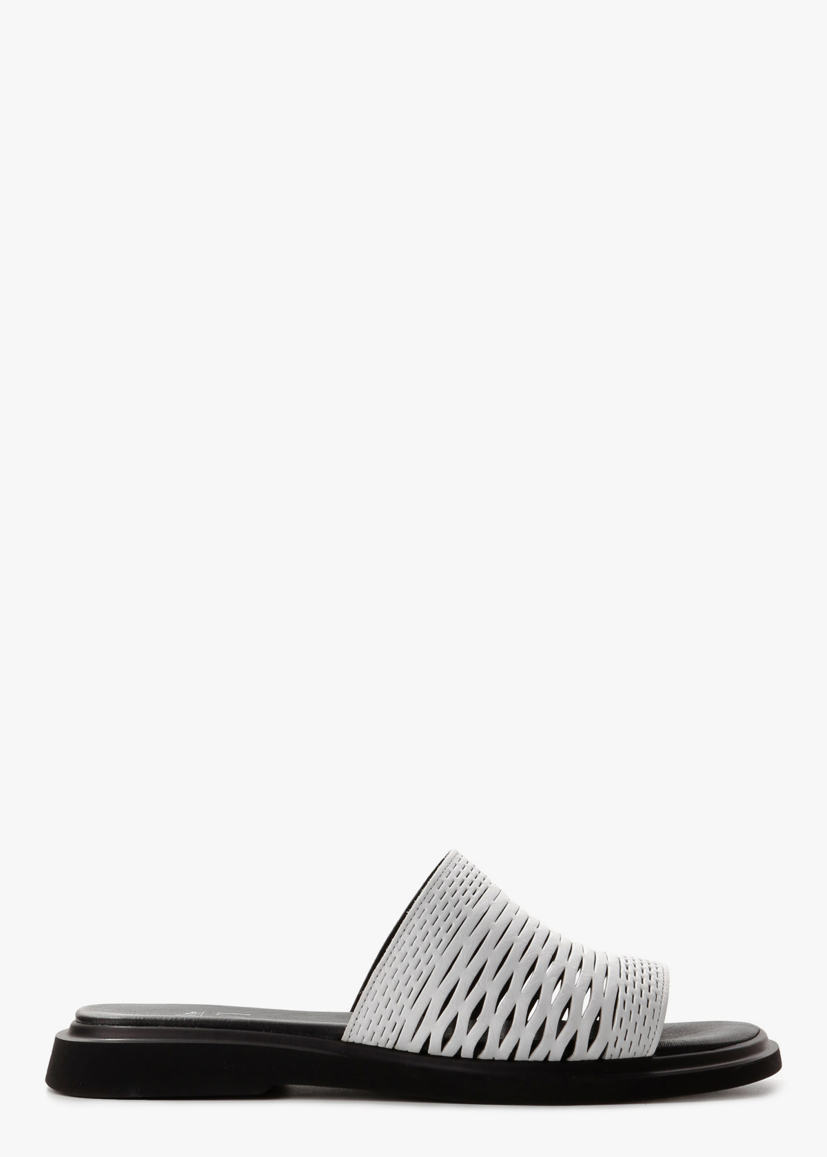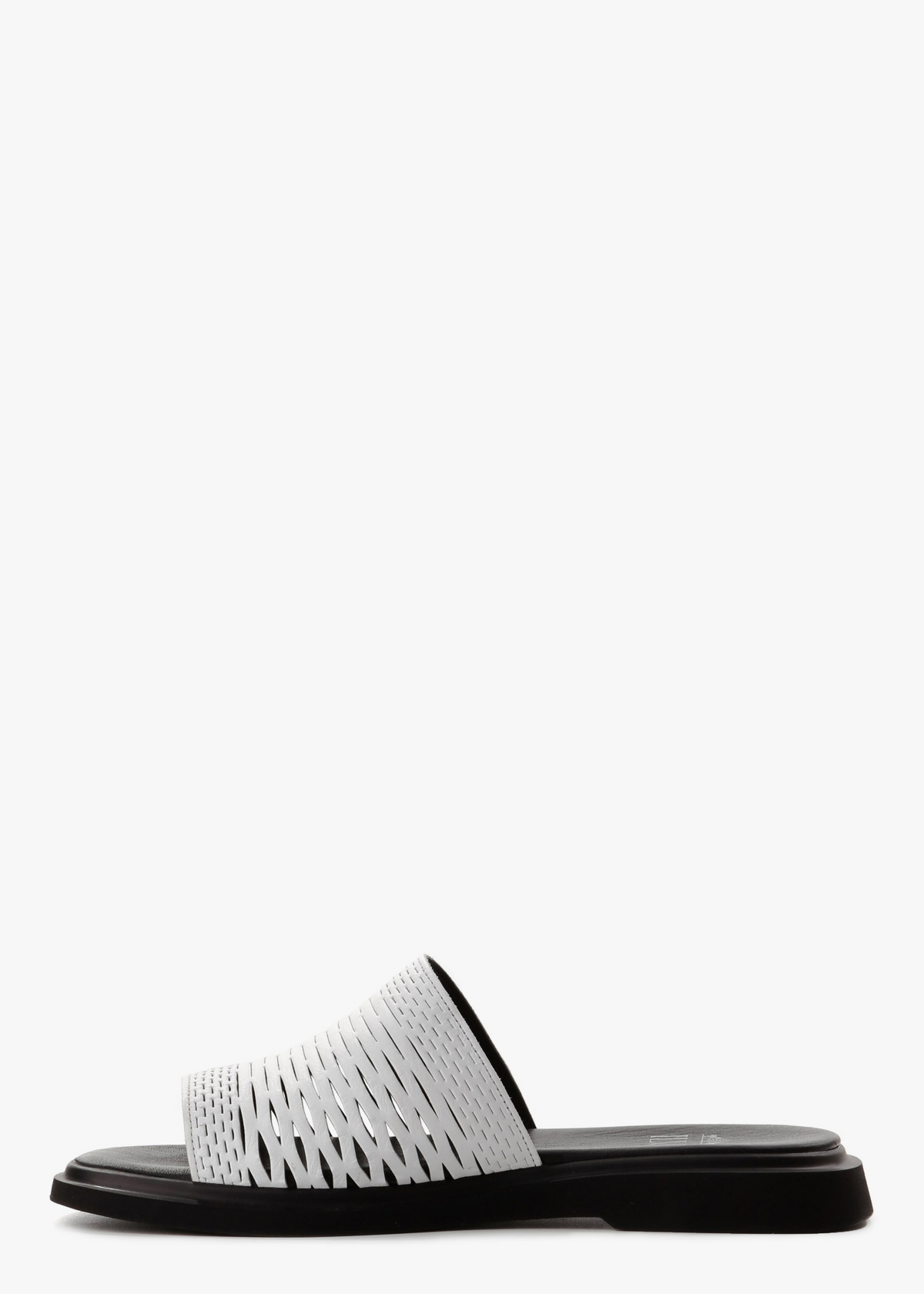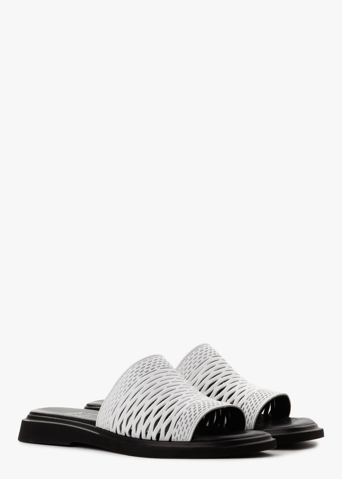Жіночі шльопанці на чорній підошві з верхом холодного білого кольору — зручна та практична модель на щодень. Верх виконаний із натуральної шкіри та повністю перфорований, що забезпечує хорошу вентиляцію і комфорт у спеку. Контрастна підошва додає виразності та стабільності під час ходьби. На нозі відчуваються легкими, м’якими та зручними для тривалого носіння.