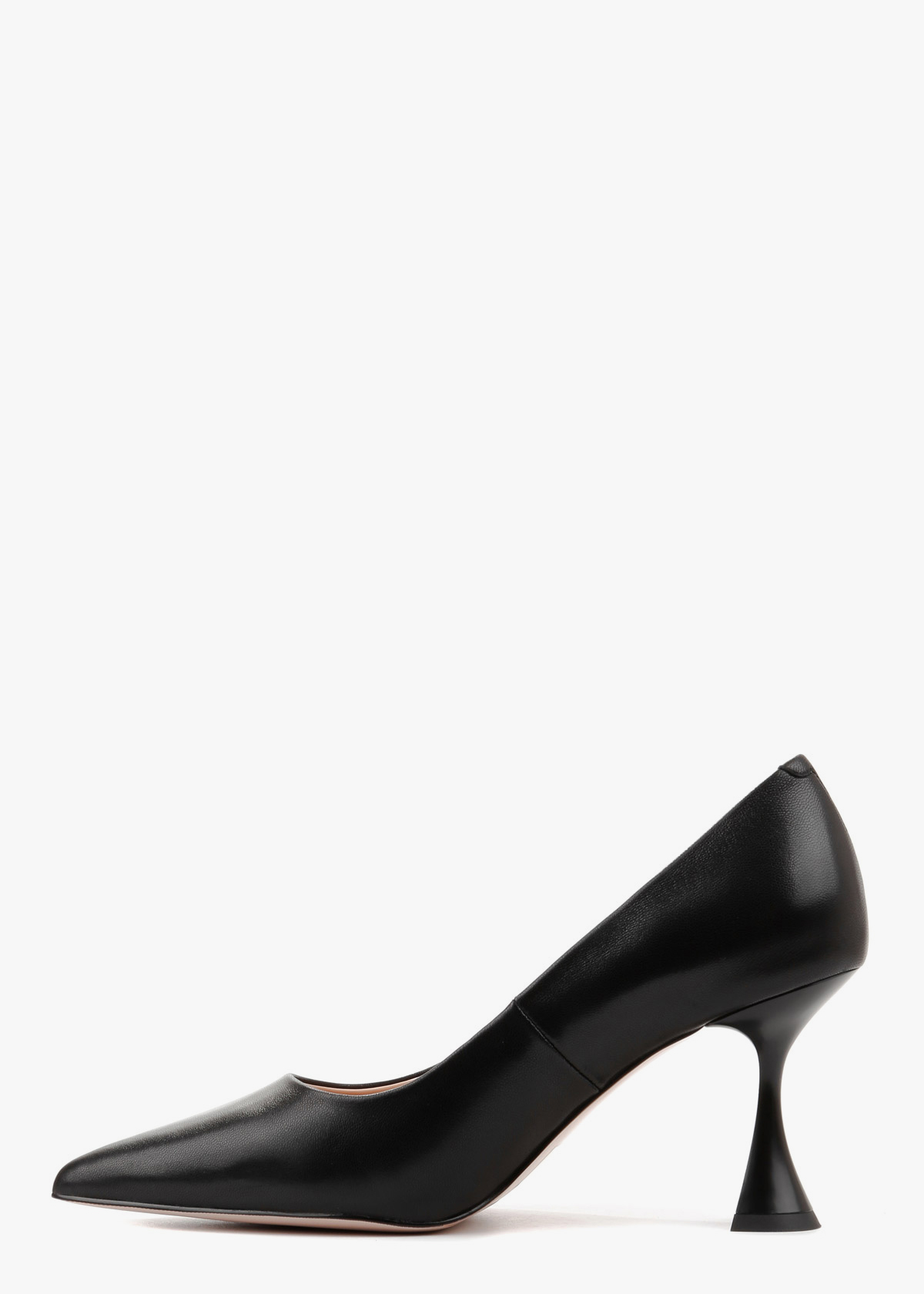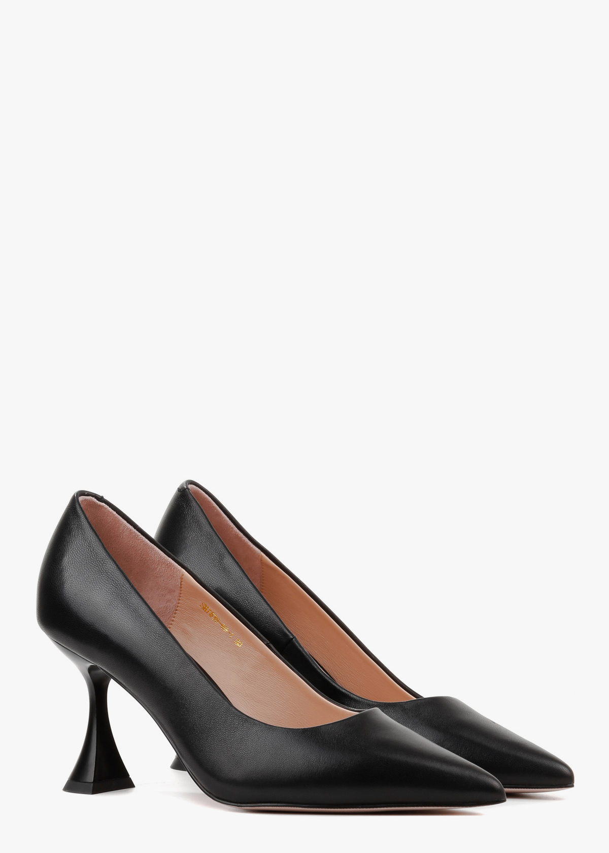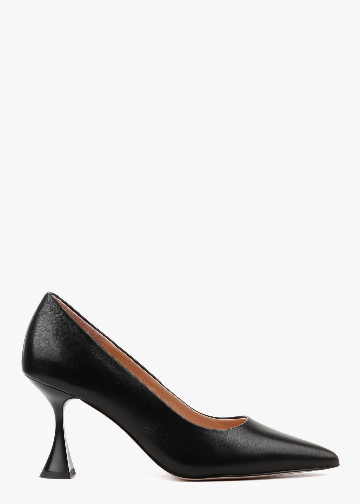 Жіночі туфлі-човники чорного кольору з натуральної шкіри — елегантна модель із витягнутим носком та акуратним вирізом. М’який шкіряний верх має приємну текстуру та комфортно сідає по нозі. Каблук розширюється донизу, що забезпечує кращу стійкість і впевненість під час ходьби. Модель зручна, добре тримає стопу та підходить для тривалого носіння.