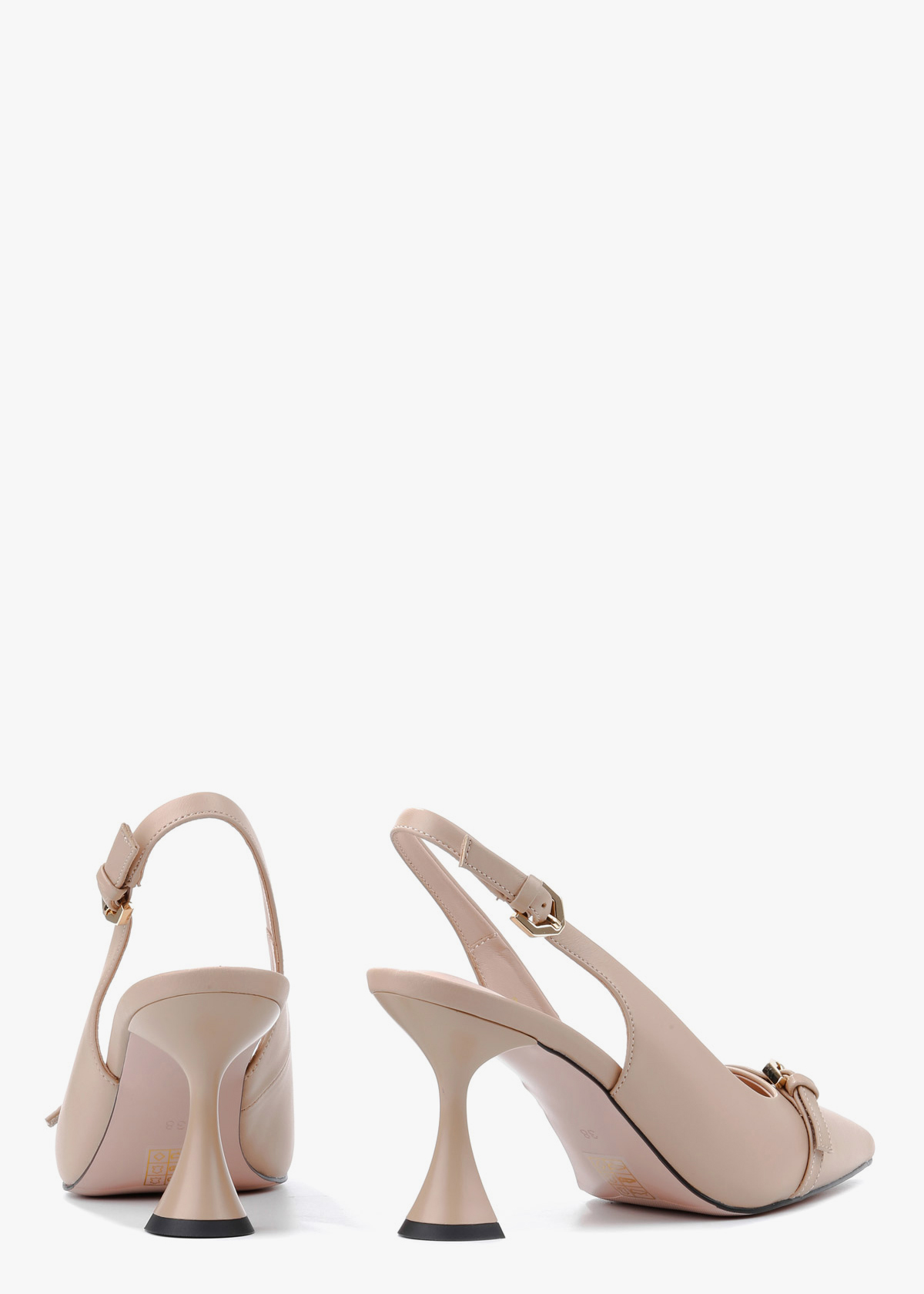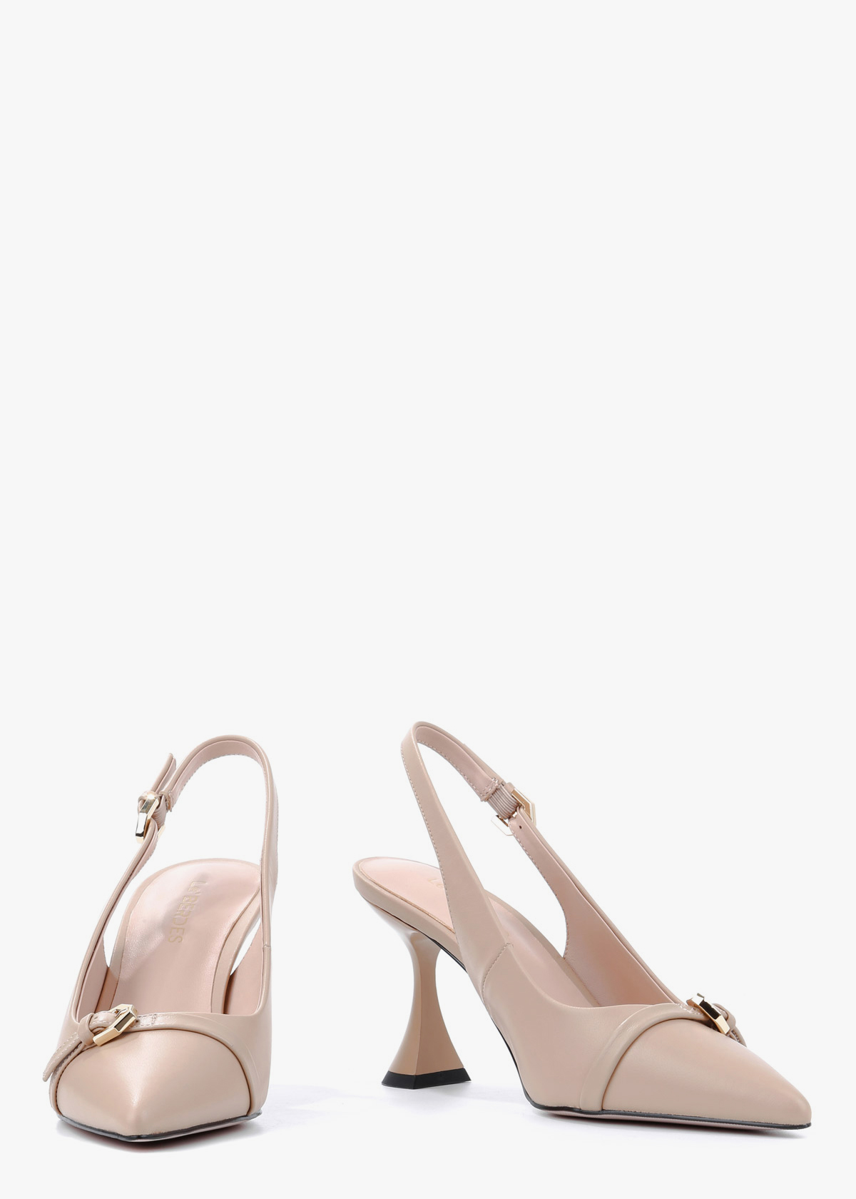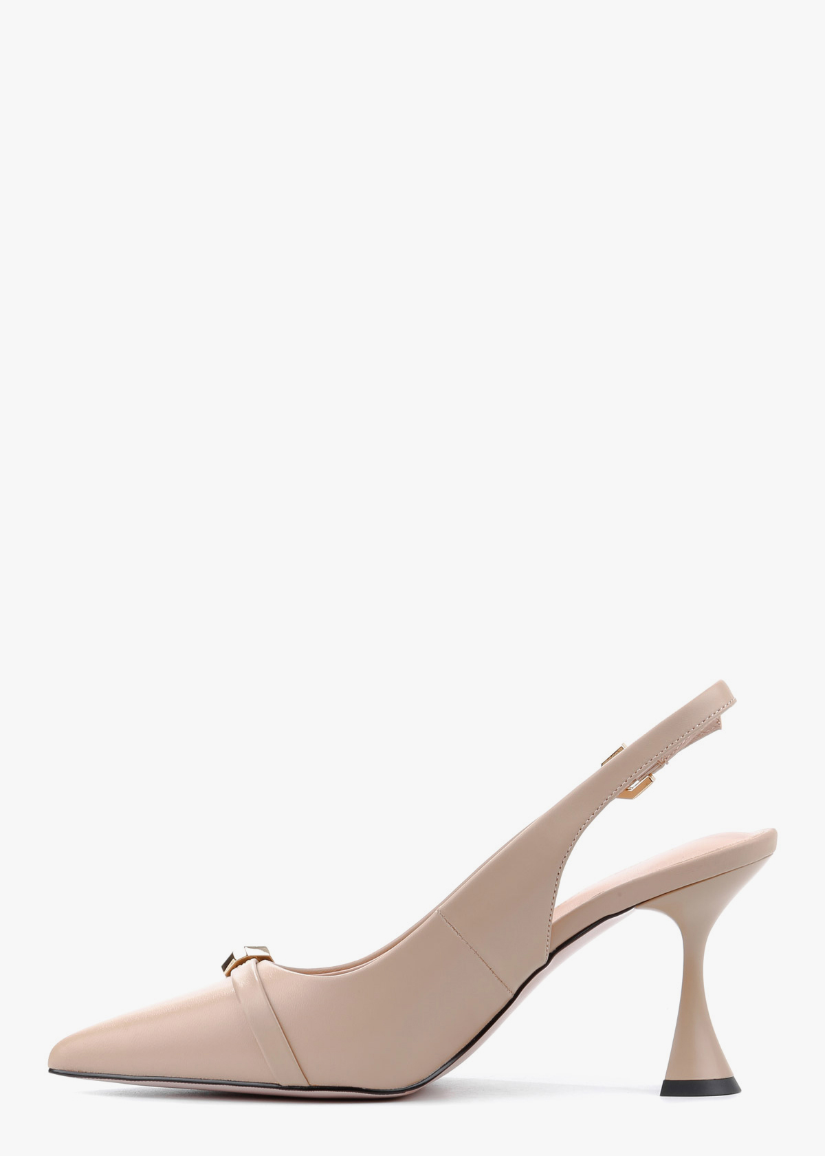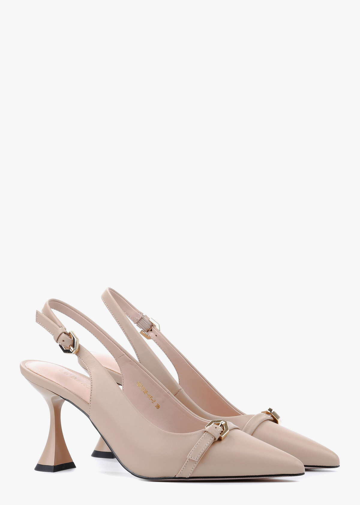 Бежеві шкіряні сабо з елегантним загостреним мисом, декорованим тонким ремінцем у тон і золотою фурнітурою, яка додає виробу витонченості. Каблук сабо розширюється до низу, що забезпечує стійкість і комфорт при ходьбі. Високоякісна натуральна шкіра робить виріб приємним на дотик і довговічним, а продумана конструкція каблука дозволяє відчувати легкість і впевненість протягом усього дня.