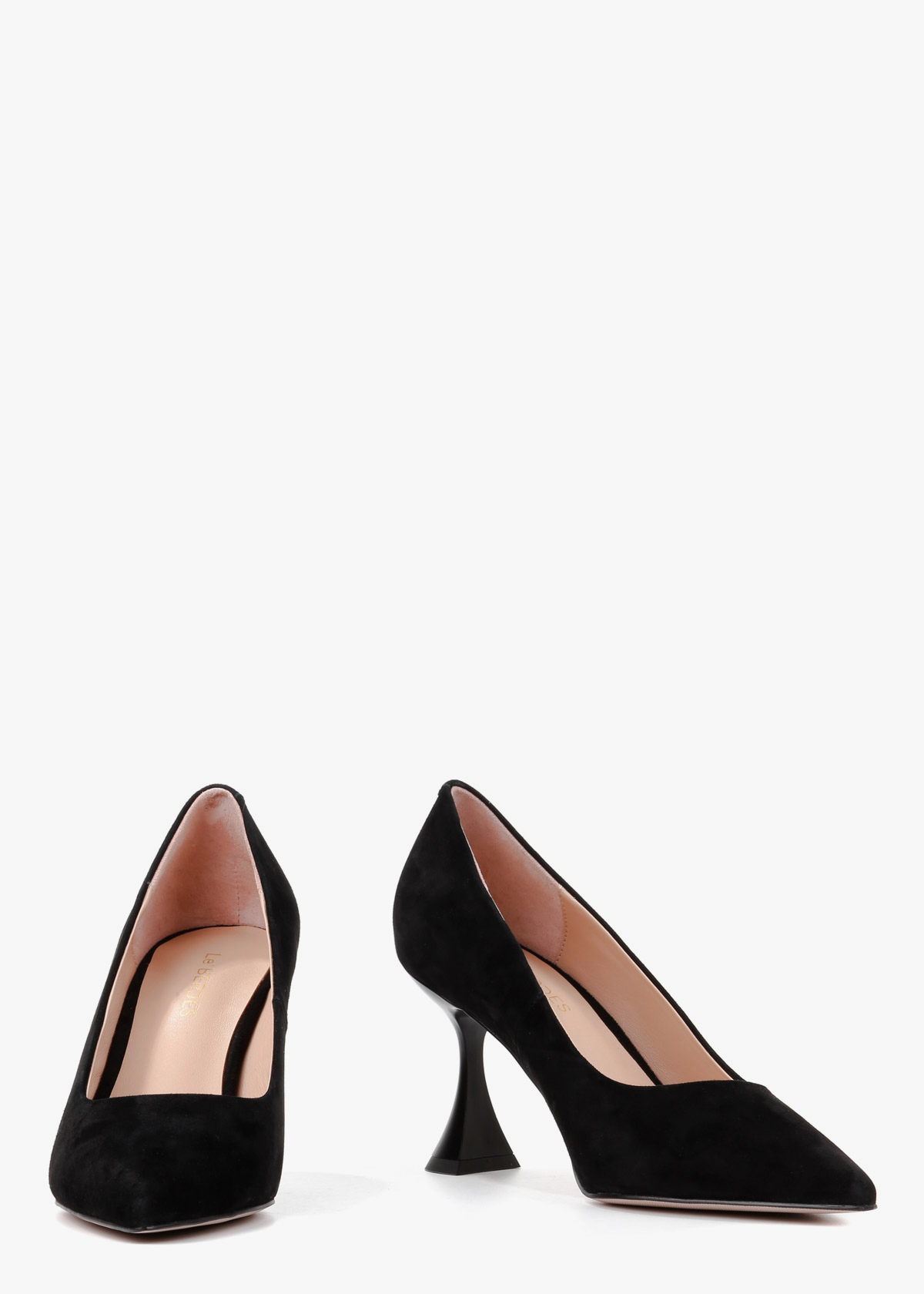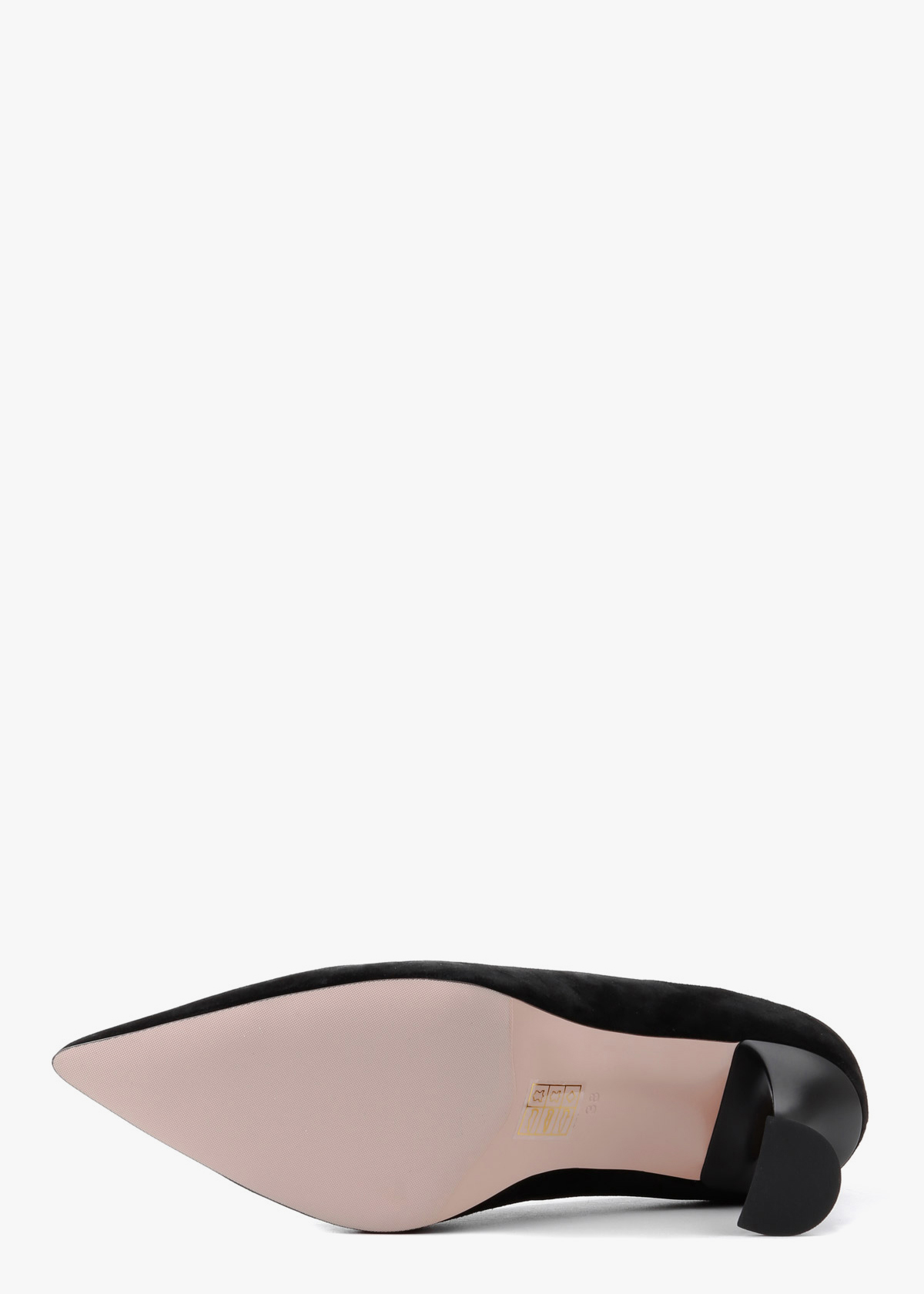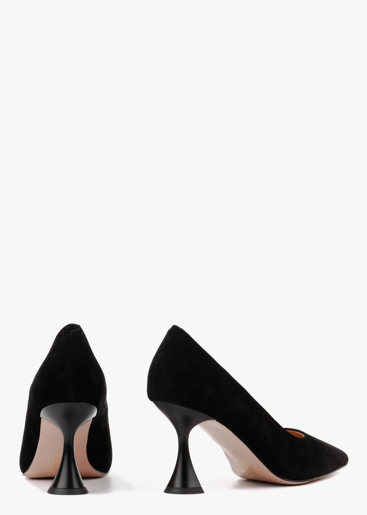 Жіночі туфлі-човники чорного кольору з натуральної замші — елегантна модель із витягнутим носком та акуратним вирізом. М’який замшевий верх має приємну текстуру та комфортно сідає по нозі. Каблук розширюється донизу, що забезпечує кращу стійкість і впевненість під час ходьби. Модель зручна, добре тримає стопу та підходить для тривалого носіння.