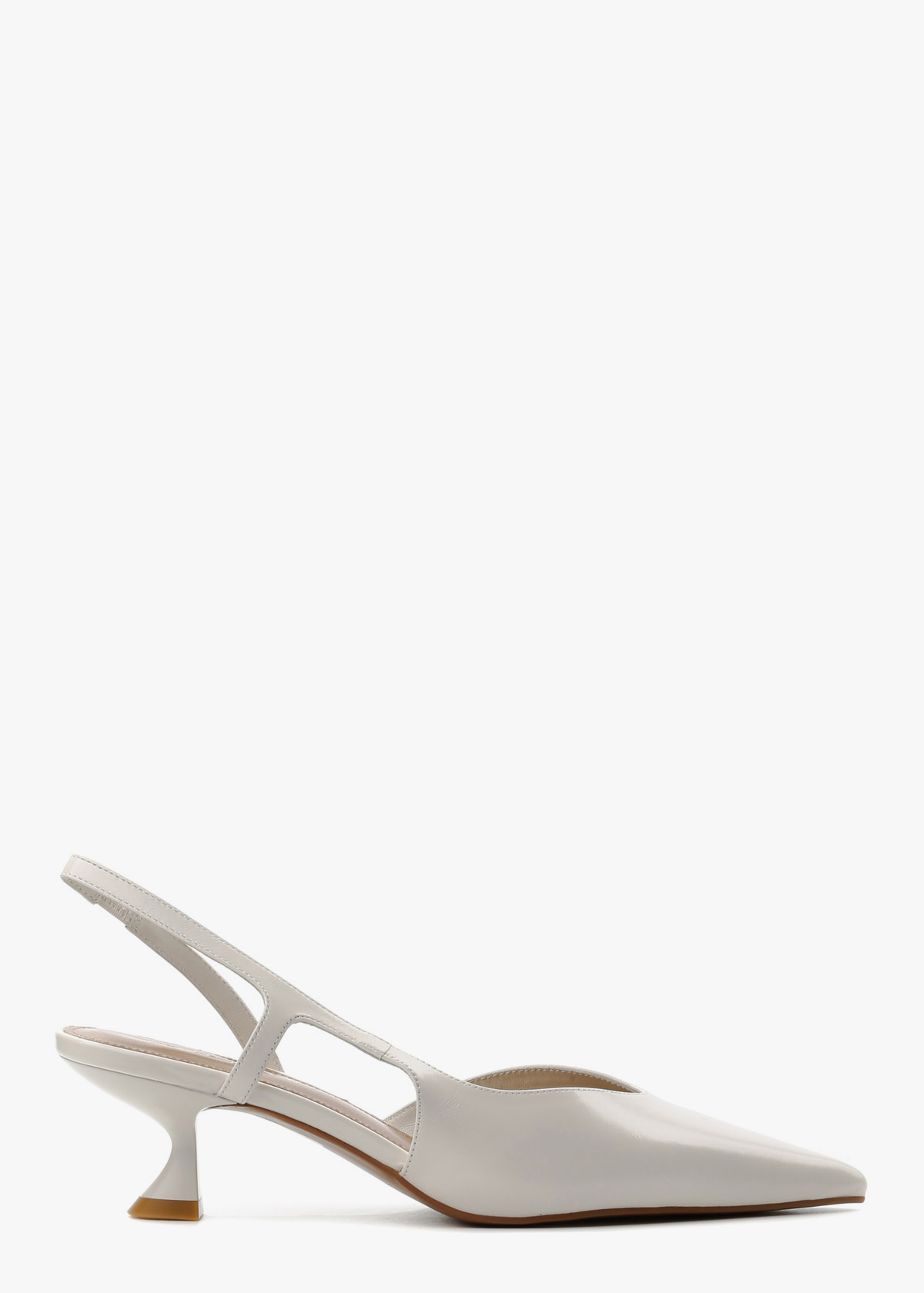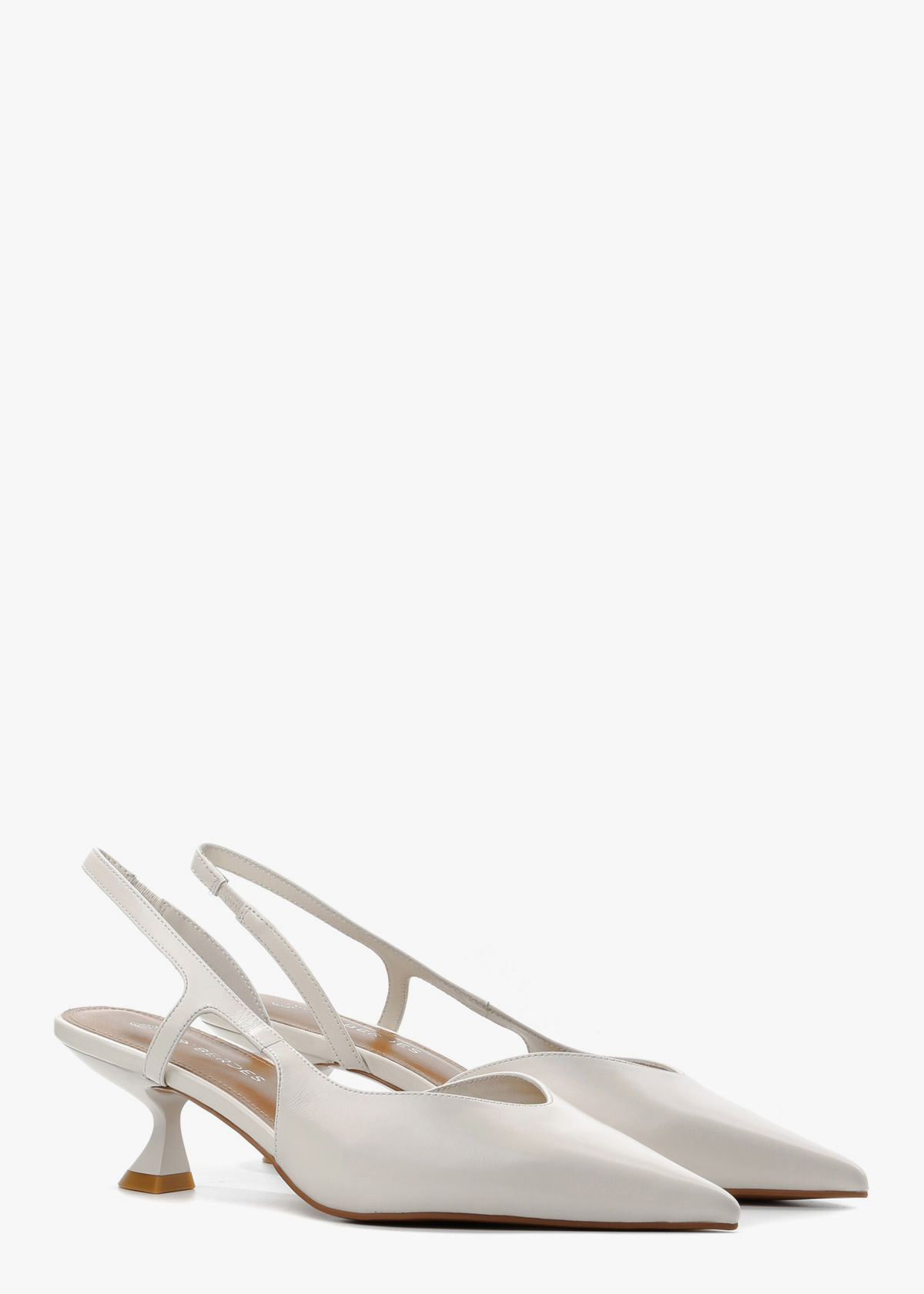 Жіночі сабо у насиченому молочному кольорі, виготовлені з гладкої натуральної шкіри з легким глянцевим блиском. Модель має елегантний загострений мис та оригінальний фігурний каблук невеликої висоти, що забезпечує комфорт протягом усього дня. Лаконічний дизайн із тонким ремінцем на заднику робить цю пару ідеальним вибором для створення стильних образів.