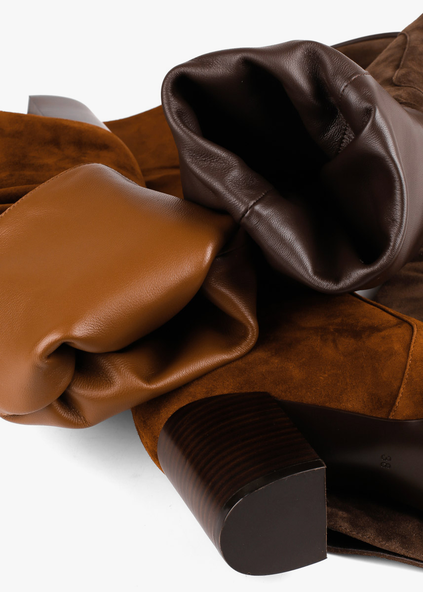 | Замеры для 38 размера: Высота сапожка: 39 см Обхват голенища: посередине 35 см, сверху 48 см |