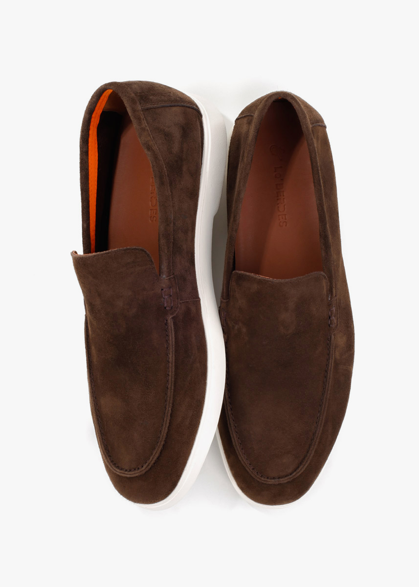 Мужские лоферы из мягкой натуральной замши – стильный выбор для повседневных образов и элегантных сочетаний. Модель выполнена в коричневом цвете, легко комбинирующемся как с классическими брюками, так и с джинсами. Аккуратный силуэт с минималистическим декором подчеркивает современный характер обуви, а приятная на ощупь замша придает изделию изысканность. Гибкая подошва обеспечивает комфорт при ходьбе, а удобная колодка хорошо фиксирует стопу.