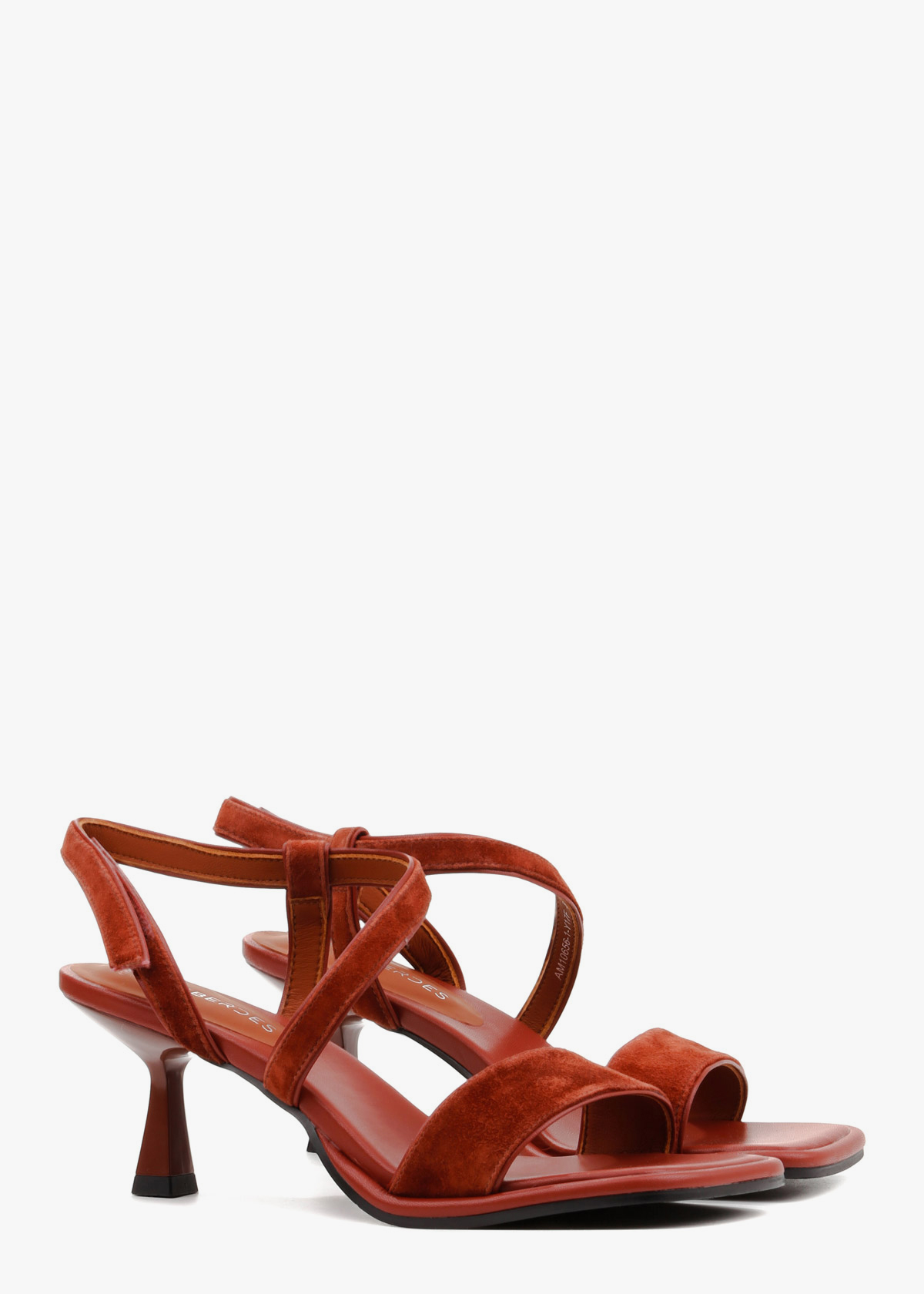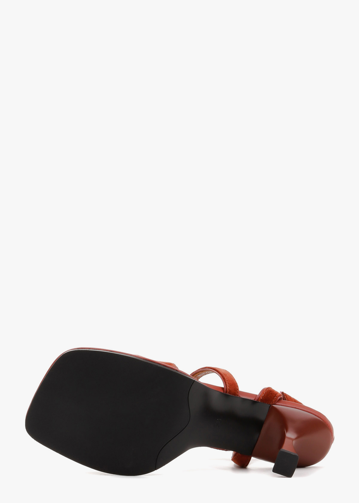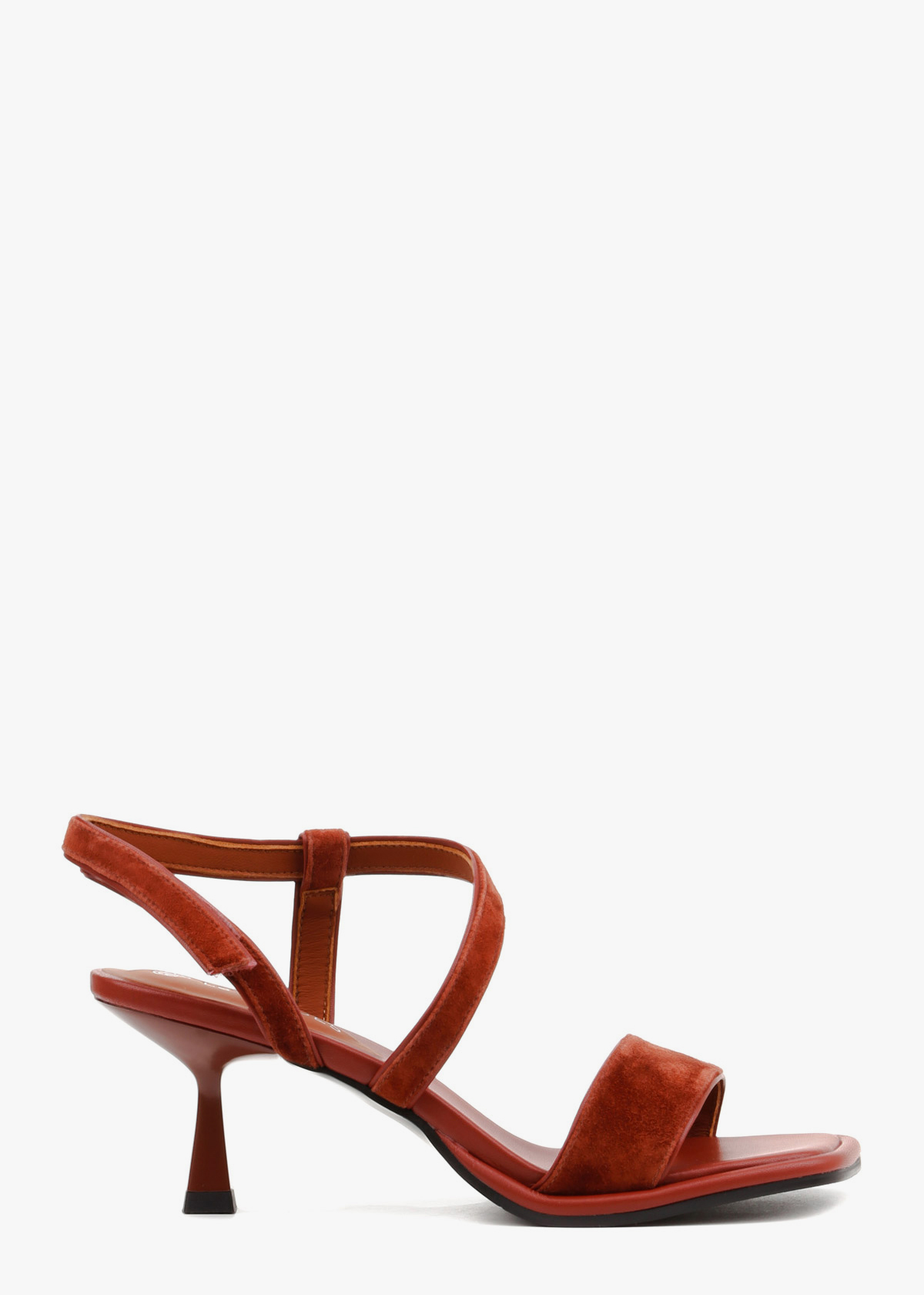 Босоножки в глубоком терракотовом цвете гармонично сочетают фактурную замшу и гладкую кожу. Модель открытого типа дополнена изящным подбором средней высоты и квадратным квадратным мысом с мягким кантом. Система тонких ремешков, перекрещивающихся на подъеме и эластичная вставка на пятке обеспечивают надежную фиксацию и комфортную посадку. Сдержанный дизайн и благородный оттенок делают эту обувь удачным дополнением к вашему образу.