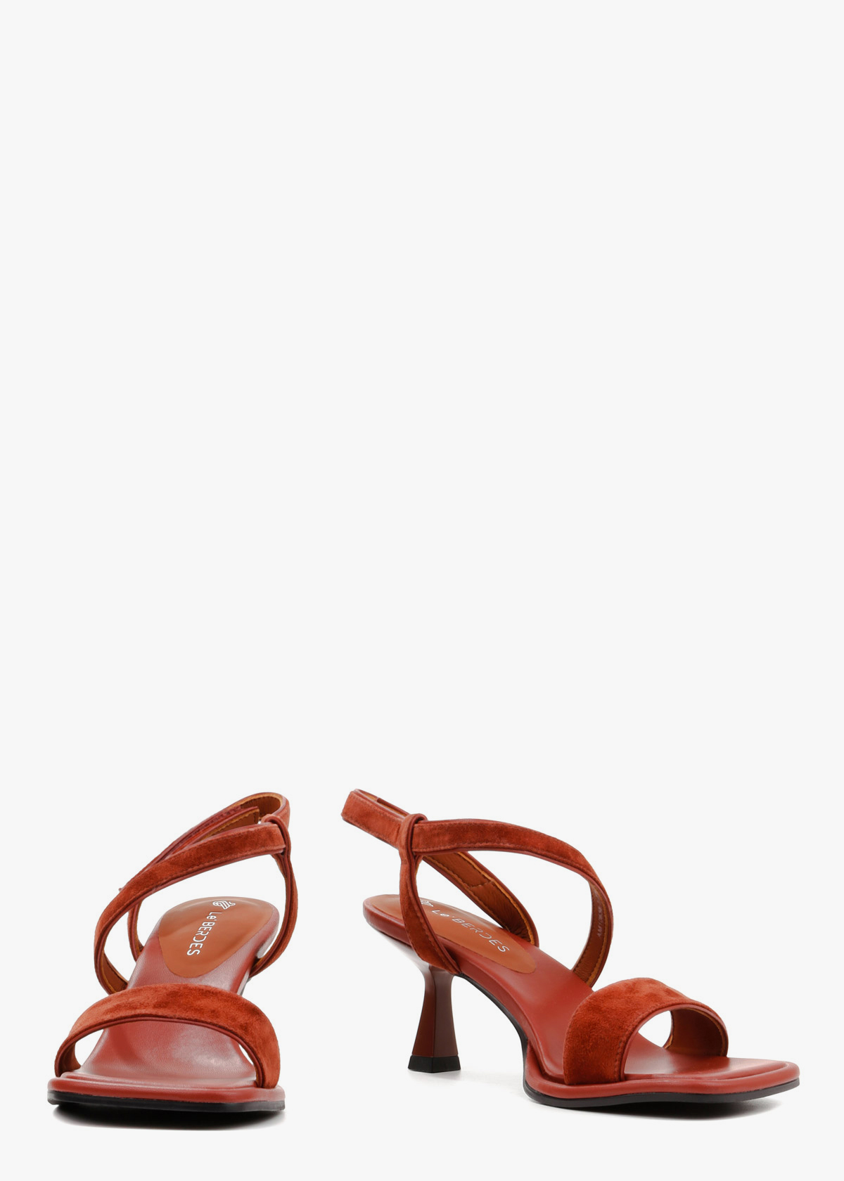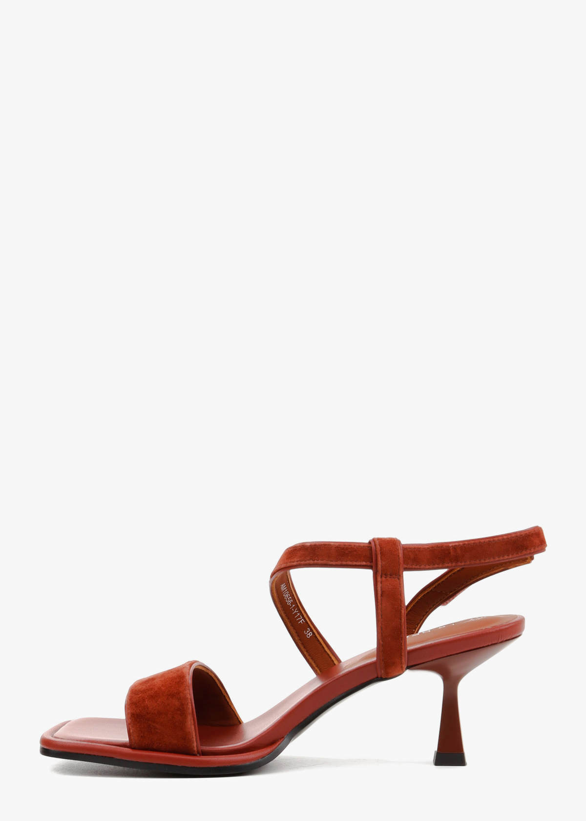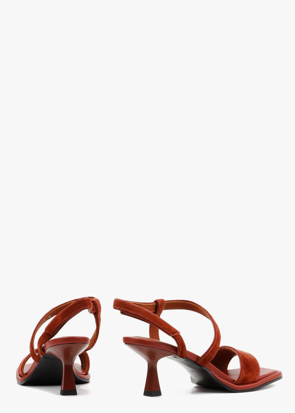 Босоножки в глубоком терракотовом цвете гармонично сочетают фактурную замшу и гладкую кожу. Модель открытого типа дополнена изящным подбором средней высоты и квадратным квадратным мысом с мягким кантом. Система тонких ремешков, перекрещивающихся на подъеме и эластичная вставка на пятке обеспечивают надежную фиксацию и комфортную посадку. Сдержанный дизайн и благородный оттенок делают эту обувь удачным дополнением к вашему образу.